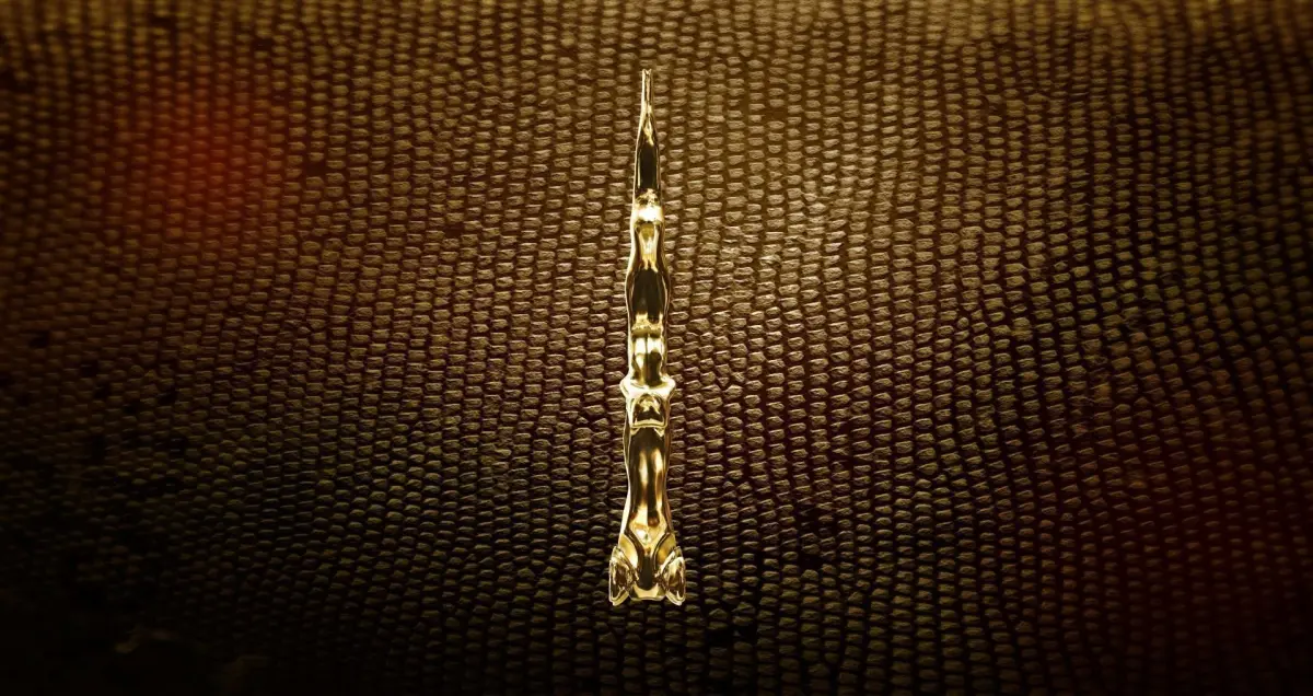 A curvy Egyptian dagger made out of gold.