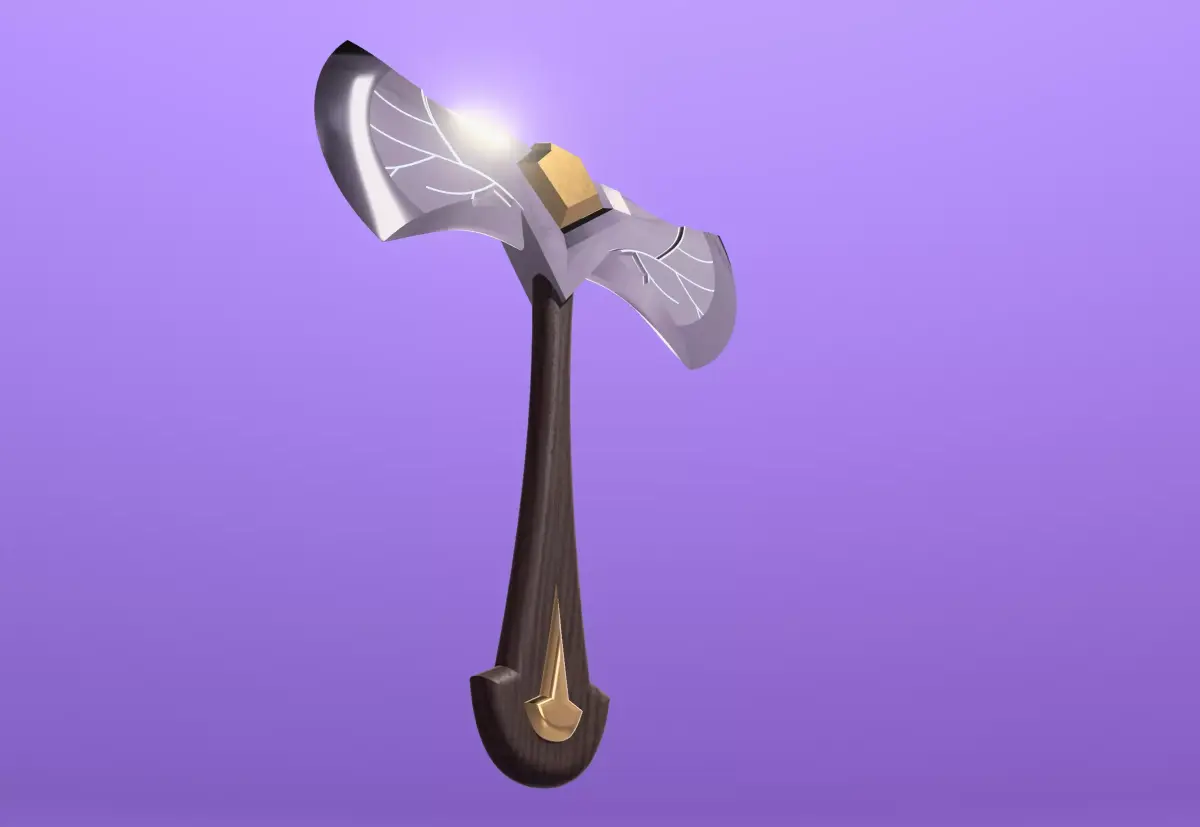 A detailed and stylized fantasy double-edge axe, designed for use in games, cinematic renders, and visual projects.This model blends realistic materials such as metal and wood with a stylized fantasy design, featuring engraved blade details and gold ornamental accents.Optimized for both real-time rendering and high-quality visualization.Technical DetailsFormats: .OBJ, .FBX.Geometry: Clean topology, triangulated meshPolycount: Approximately 5200 - 6800 tris (depending on export settings)UVs: Non-overlapping UV layout, ready for texture baking