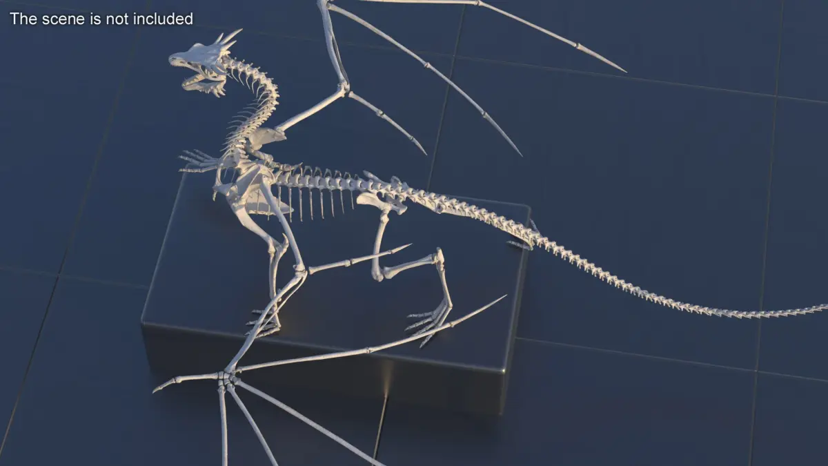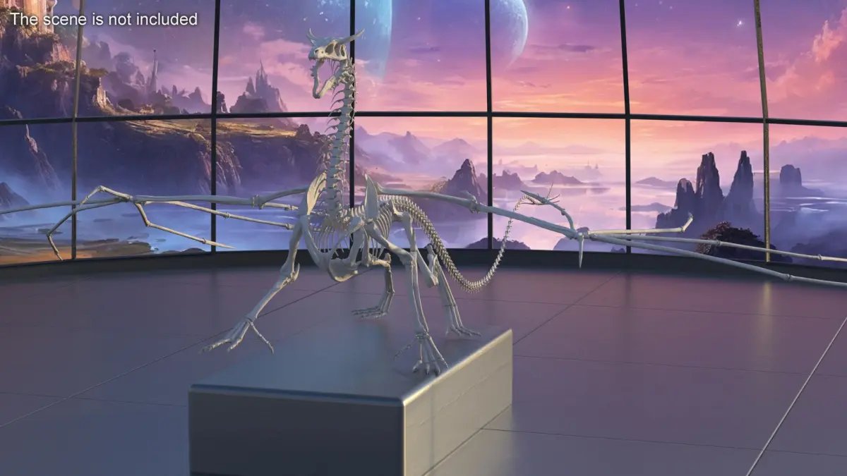 Fantasy Dragon Creature and Skeleton Rigged for Maya is a three-dimensional model of fantasy-style dragon and skeleton that is a fossilized remains of the bones of a famous monster from folklore.