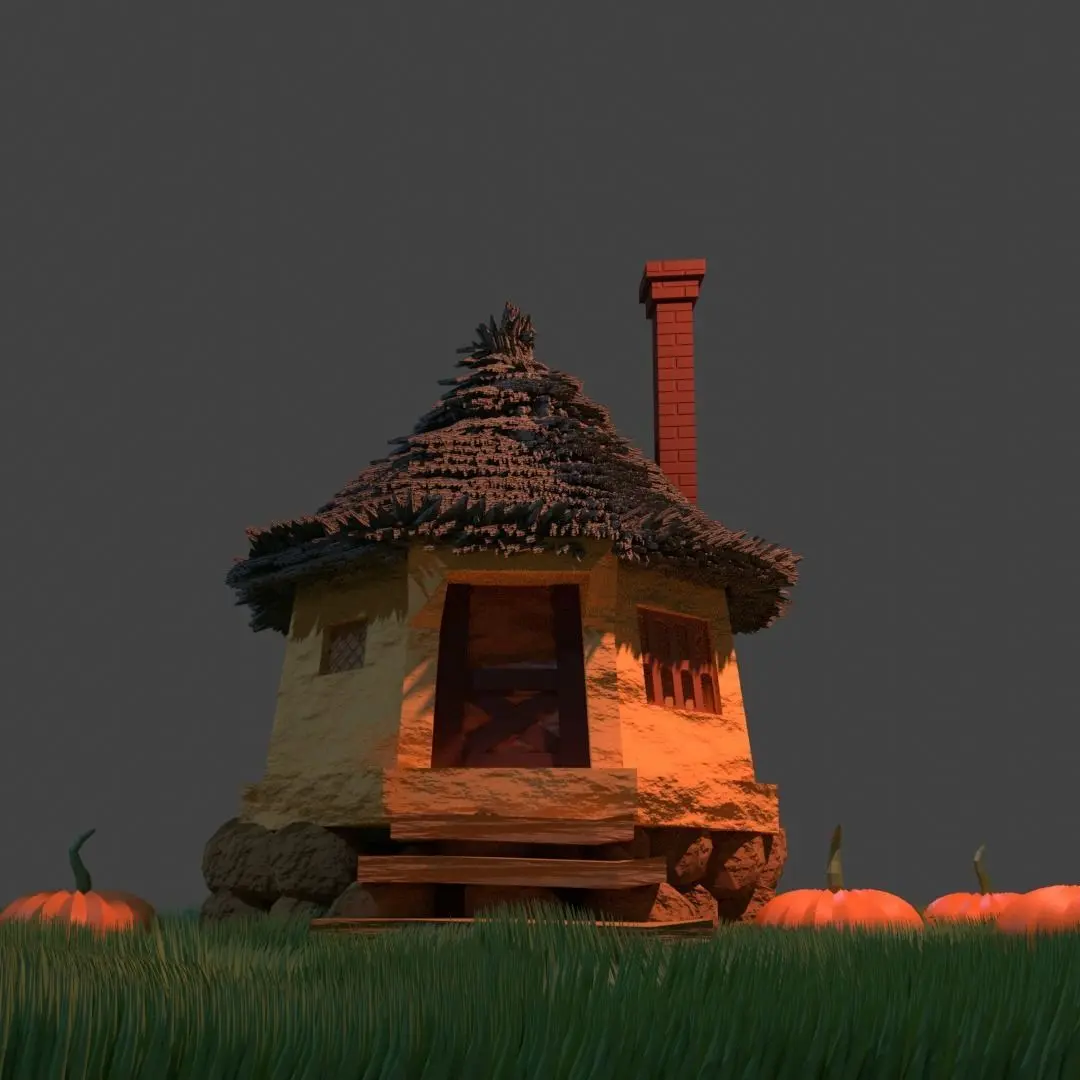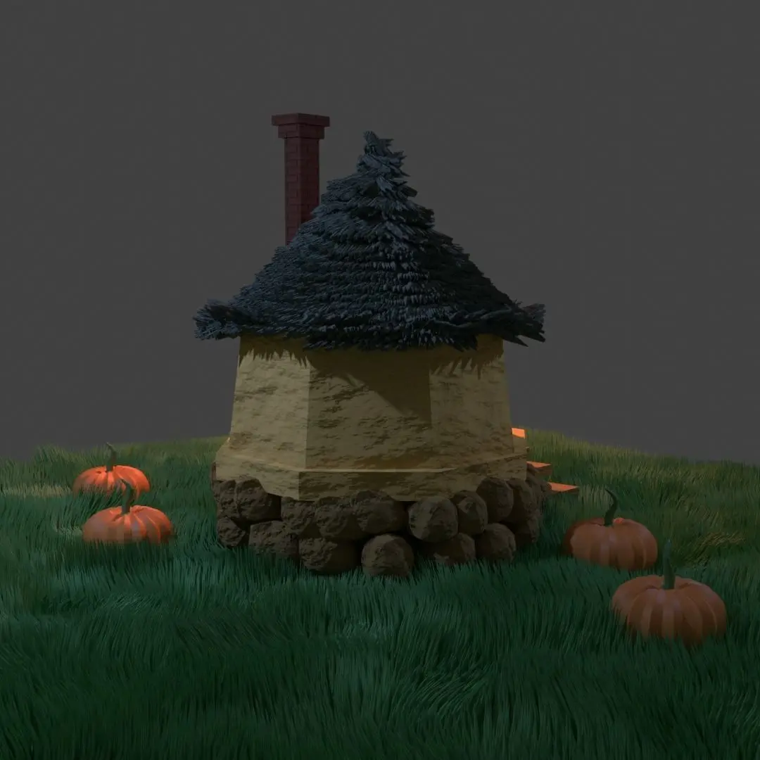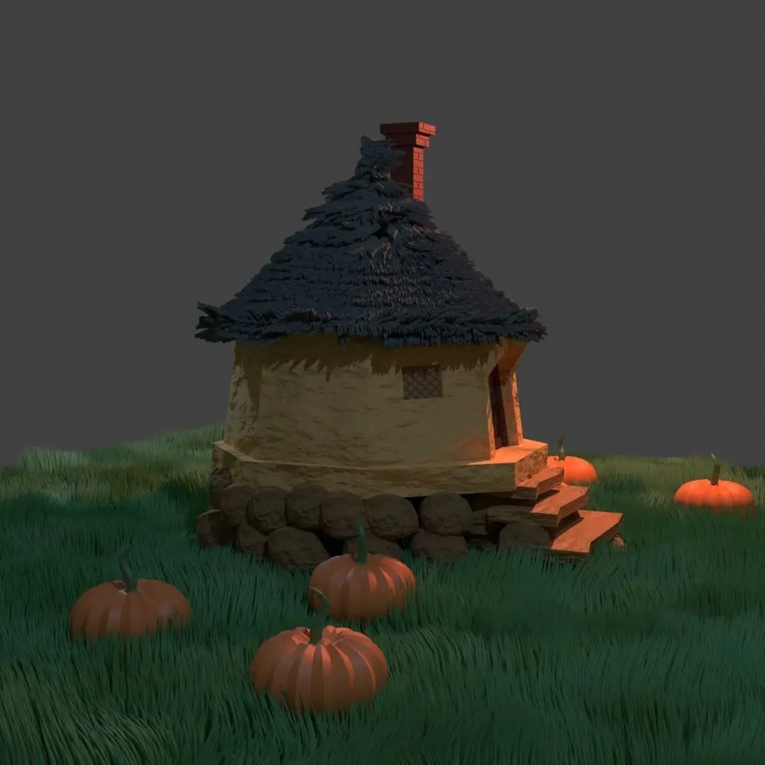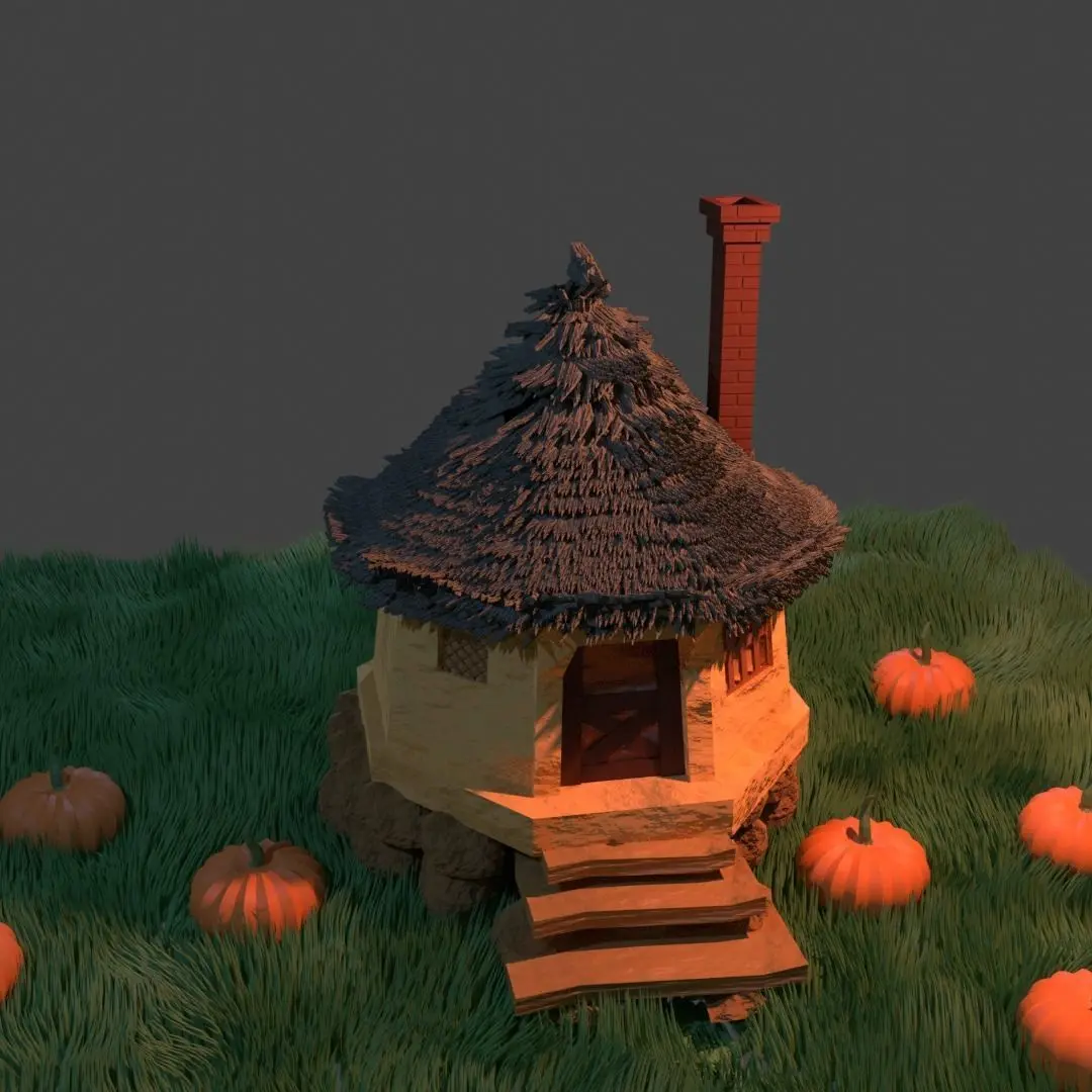 This here is a fantasy hut/cabin inspired by Harry Potter's Hagrids hut.The TILES on the roof are individual objects which are fine however I am NOT entirely sure if it is 3D printable since I do not undertand 3D printing all that well however it should work fine.Could be used in a game or in any fantasy scenery.The ground is also a hair particle set up however it is ready for any motion as it is set up to move with wind and other objects.The ROCKS on the bottom are seperate objects intentionally so that they can be re-arranged and re-shaped as needed.The materials are NOT baked.The FINAL picture is with a single sun light only to demonstrate what the product looks like without adding colour to the lights.