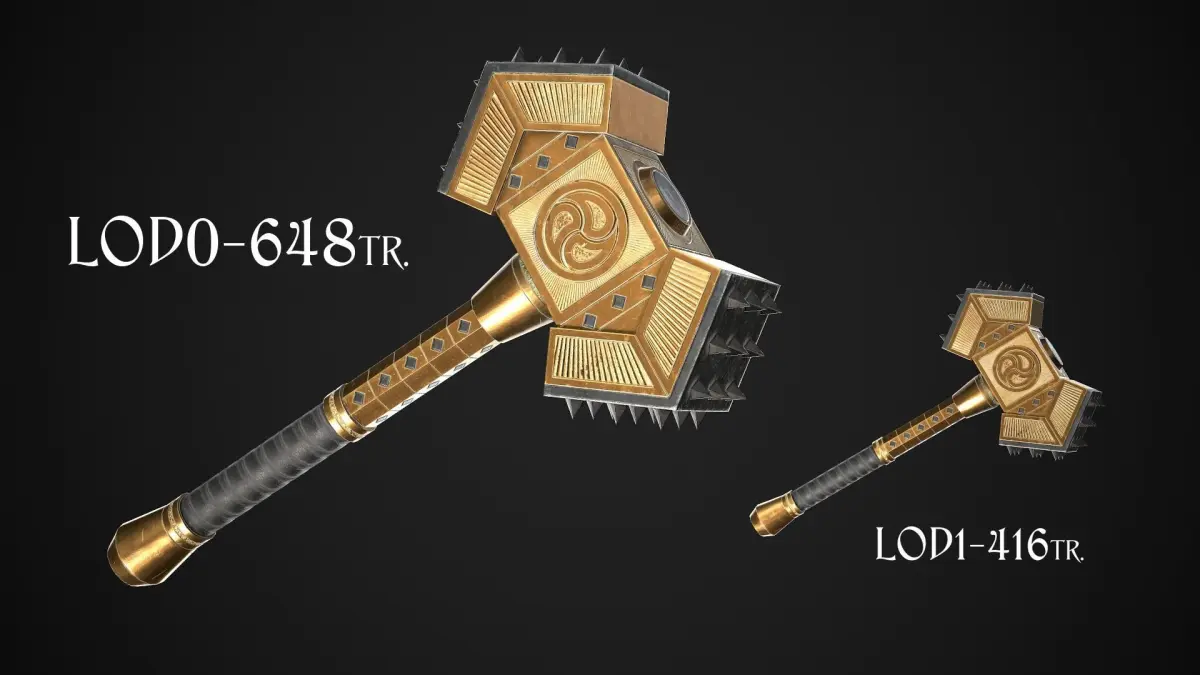Great Hammer: LOD0 - 648tr., LOD1 - 416tr.