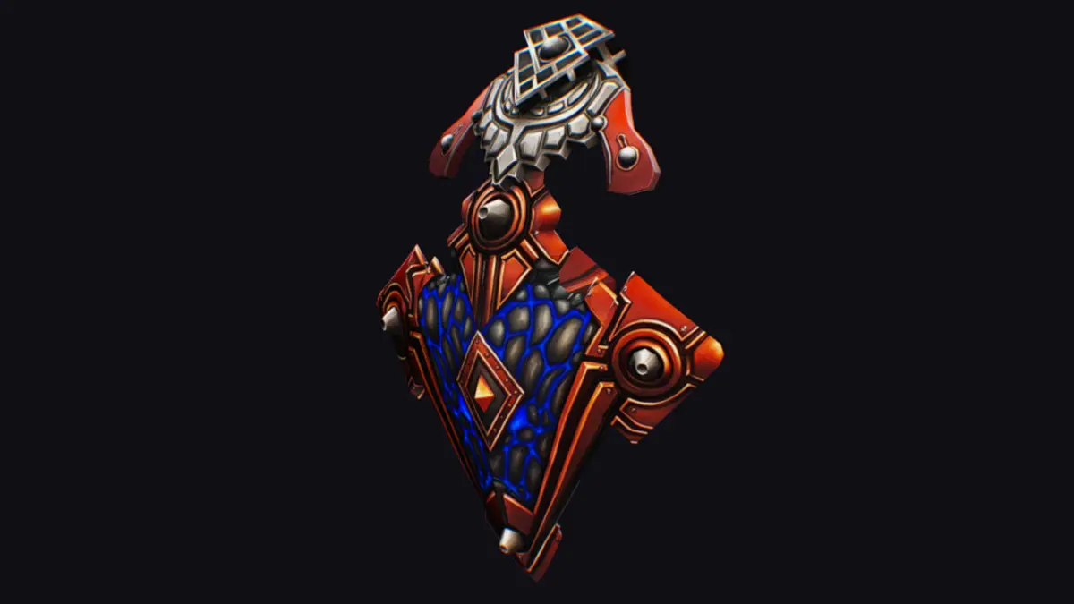 Fantasy Heavy Shield Steel Red Mechanical Armor Red Orange Style Low-poly 3D model
