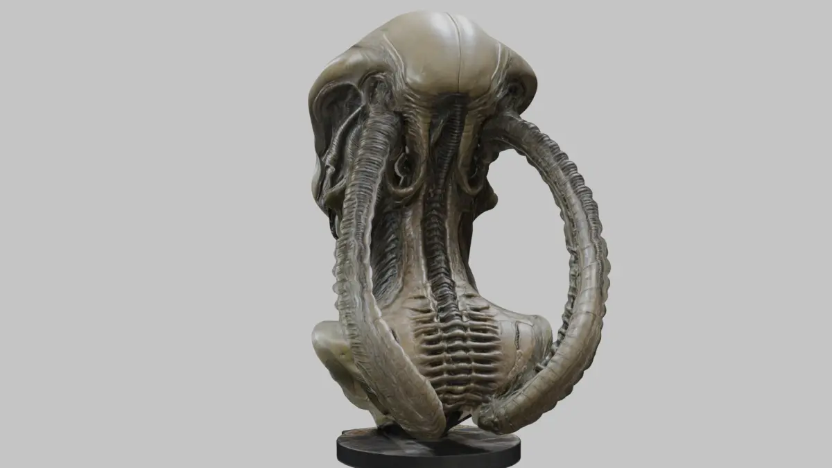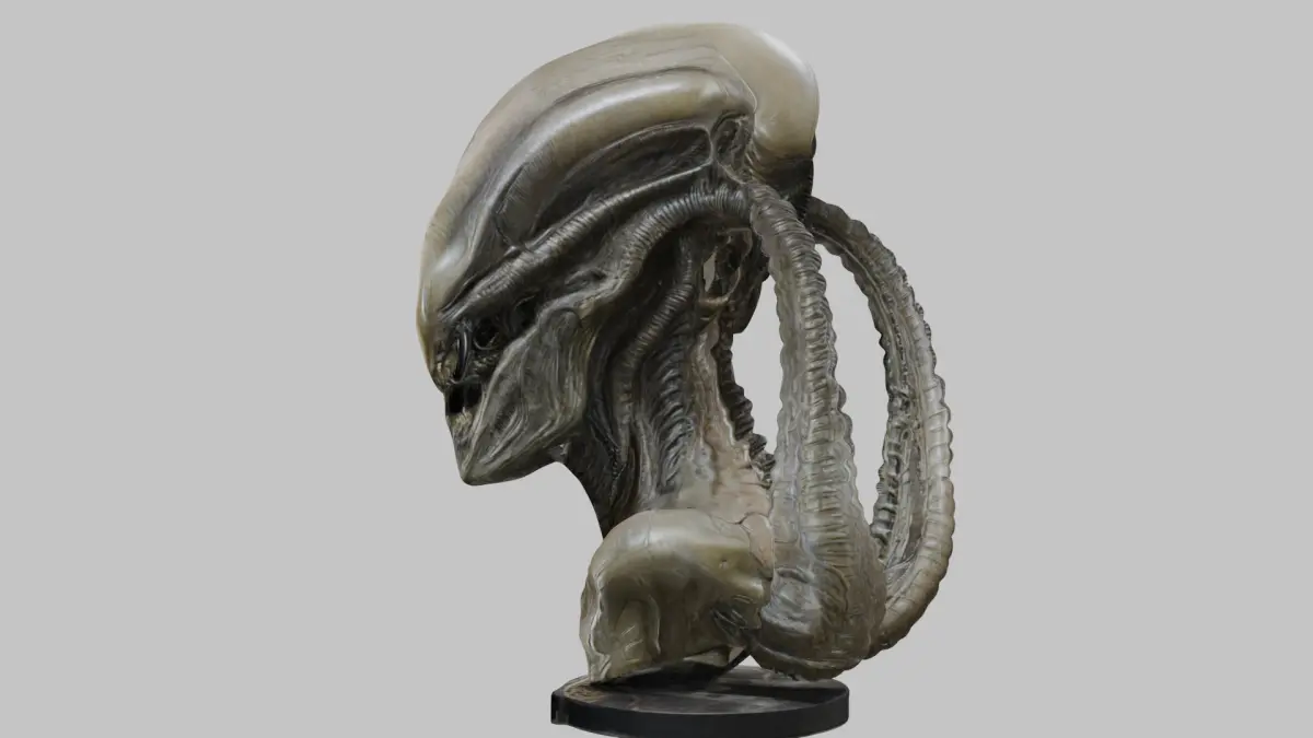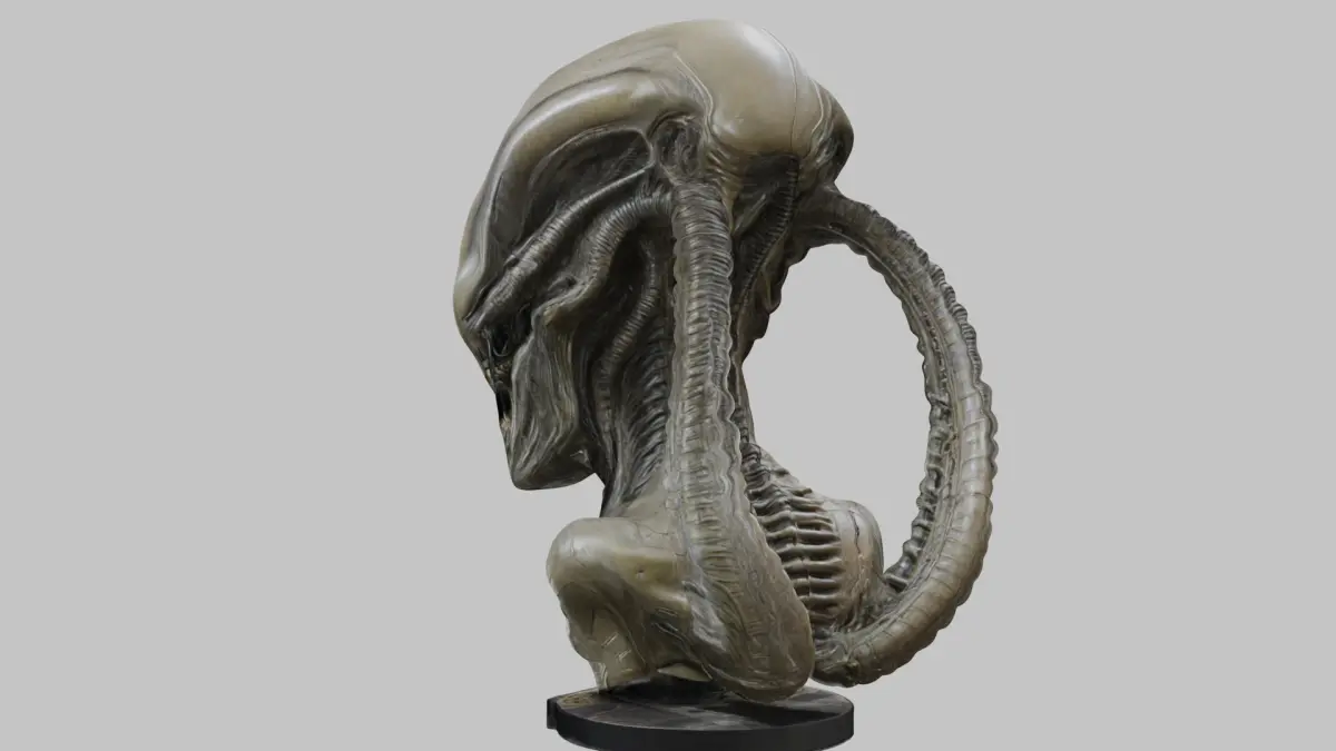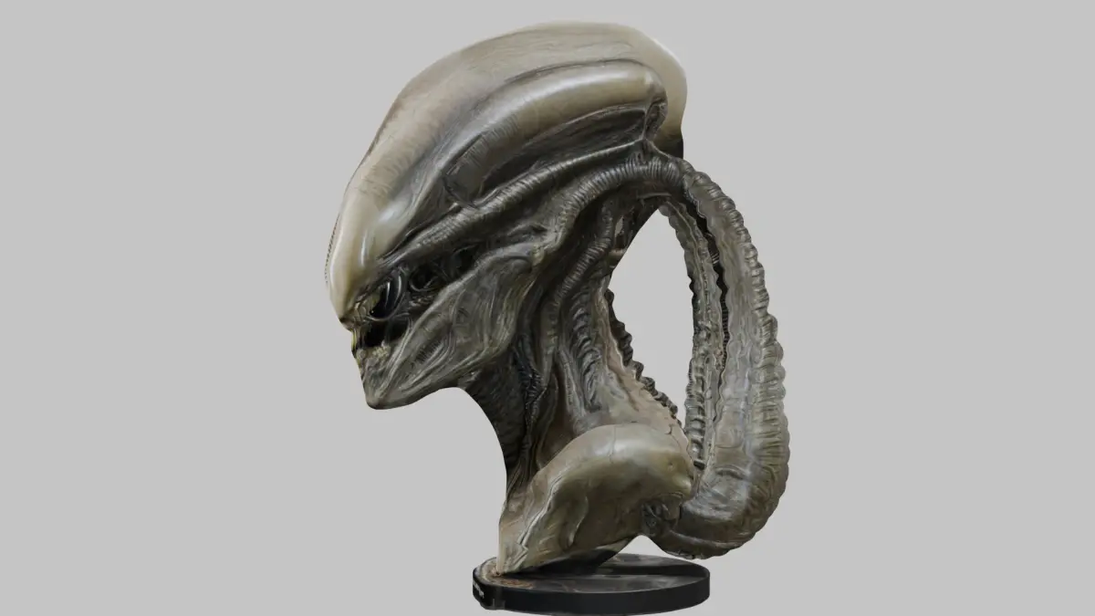 HomeCatalogFantasy HR Giger Insipred Grey Alien Head Bust Low-poly 3D model