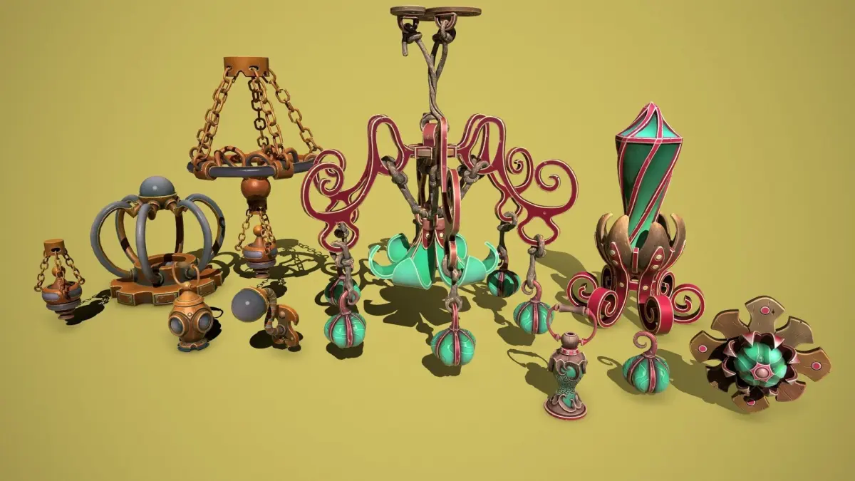 Folder - Bronze-lamp-unity-texture(Tga-4k-8bit) : Albedo, Emissive, Emissive-2, Emissive-3, Emissive-4, Normal, SpecularSmoothness, Opacity - Example of naming: (T-Bronze-lamp-Albedo)