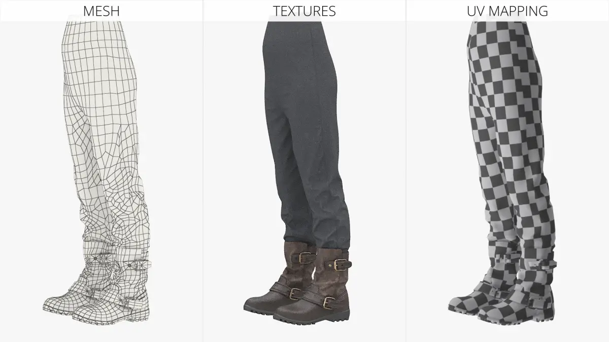 Fantasy Leather Boots with Tucked Pants Set is a high quality, photo real 3d model that will enhance detail and realism to any of your rendering projects. The model has a fully textured, detailed design that allows for close-up renders, and was originally modeled in 3ds Max 2020 and rendered with V-Ray. Renders have no postprocessing!