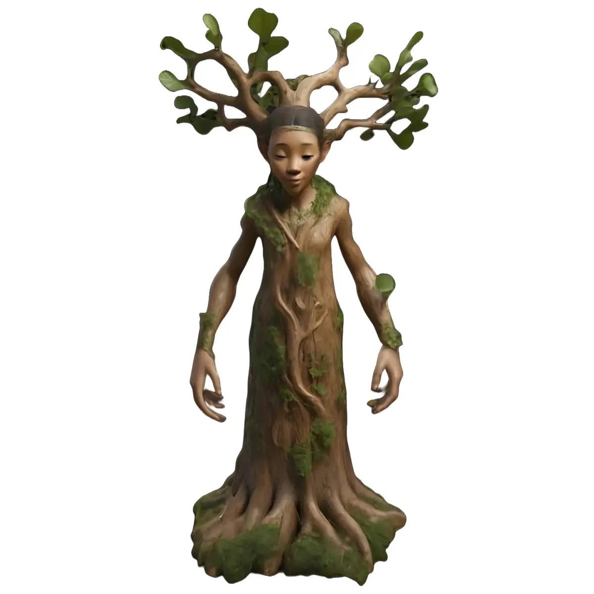 - A mystical tree-like being with branch antlers (appears to be a dryad or forest spirit)