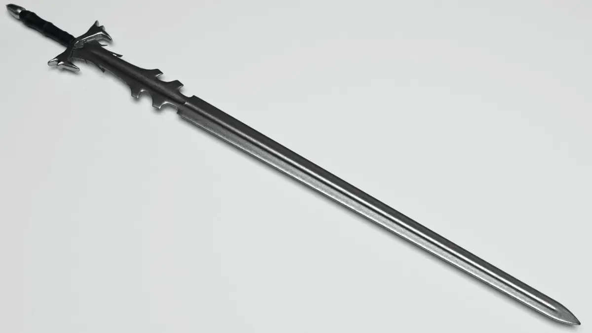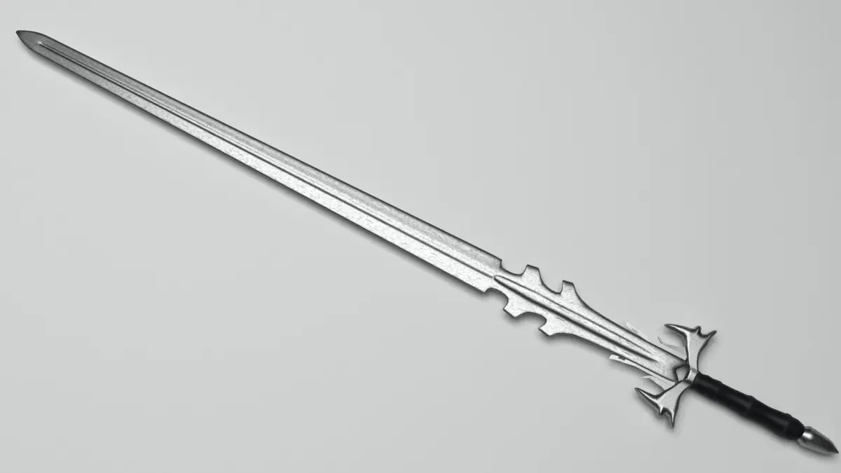 This model’s design is inspired by fantasy swords with spectacular blade and added features round it, a leather grip and a pointy pommel.