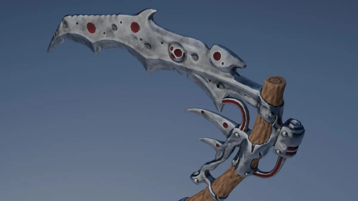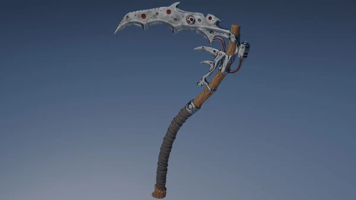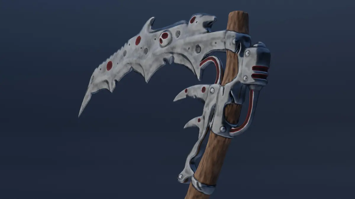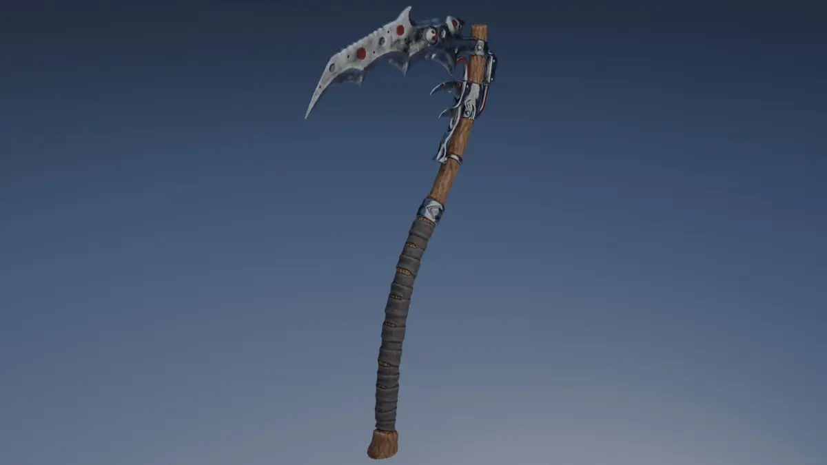 This game-ready scythe contain fantasy blades with mystic fluid powwering it and realistic handle made of wood.