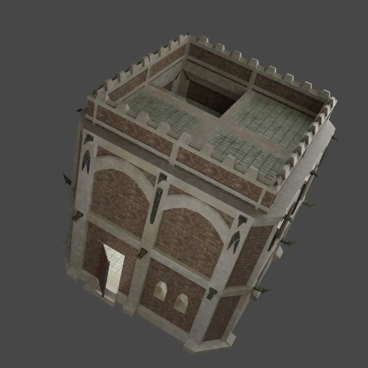 Files in .blend and .fbx format about a fantasy medieval keep. The .blendfile include two meshes, the keep and the door, well in the .fbxfiles both of them are seperated. Mention, that the doorframe is included in the Keep_1_CG.fbx file, not seperated. This is because of easier manipulating the door. It's easy to animate the door, as the only transformation has to be made, is to be rotating the door-mesh. In the texture- file all of the textures you can see in the pictures are included, as colour, normal and roughness-maps. The meshes are uv-unwrapped, but for better render results, you have to do some fine adjustments.