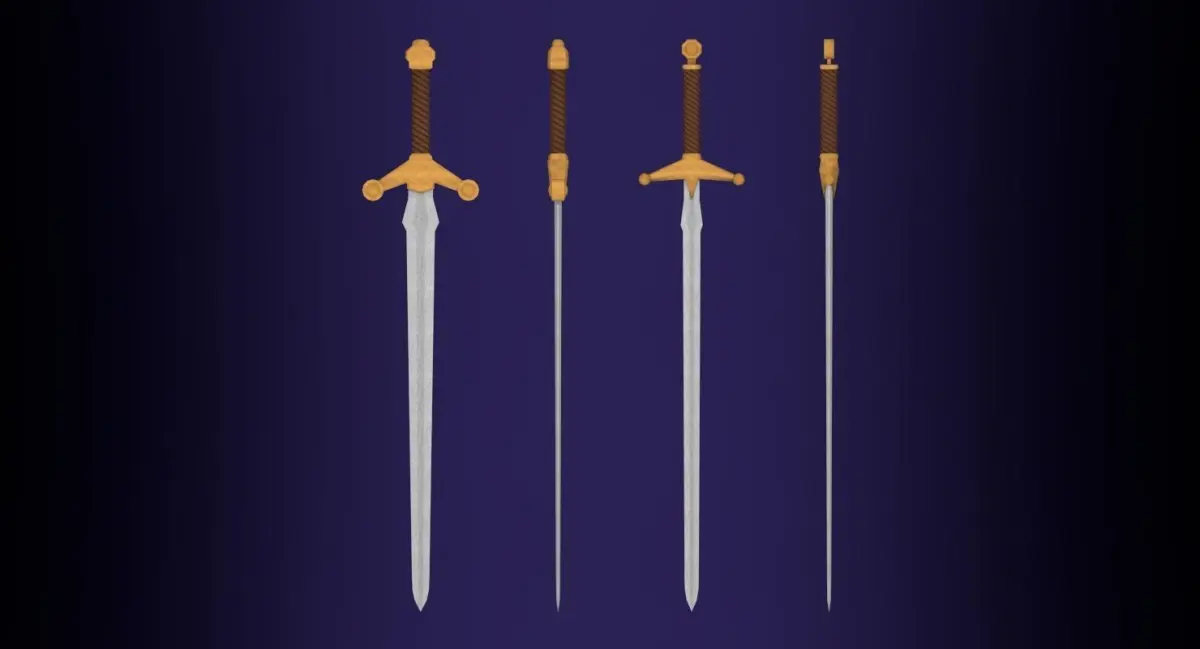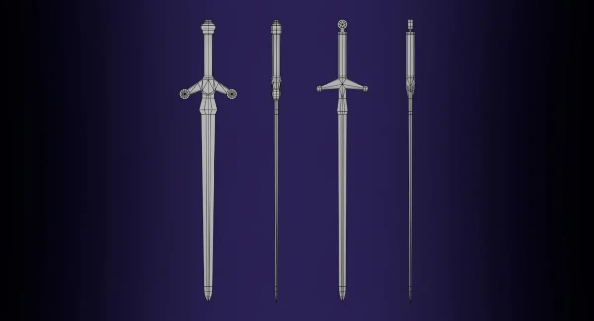 Two swords a Broadsword and a Longsword.Broadsword Polygons: 808. Verticies: 420.Longsword Polygons: 456. Verticies: 251.A default material from your Software of choice can be used. Set your own material glossiness and roughness etc.Does not require 3rd party renderers, plug-ins or scripts.They are designed to have minimal polygons so are not subdividable.Orign/Pivot point is placed in the centre of the handle.Real world scale of both swords is 0.89m oe 89cm in length.1024x1024px texture maps:Diffuse Color.Ambient Occlusion.Combined Diffuse and AO.Transparant UV Layout.Specular gloss.