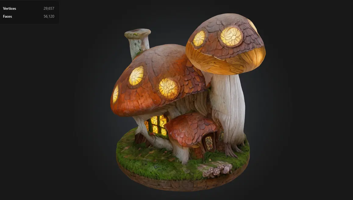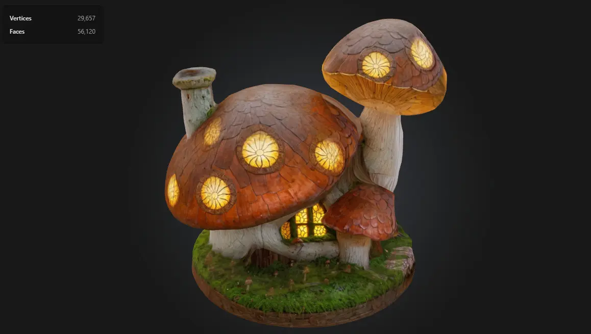 The Fantasy Mushroom House is a magical glowing structure sculpted in a hand-painted fantasy style. With its large mushroom cap roof, warm interior light, and mossy forest base, it’s perfect for building enchanted villages, fairy tale adventures, or stylized RPG worlds. Mid-poly optimized and ready for real-time environments.
