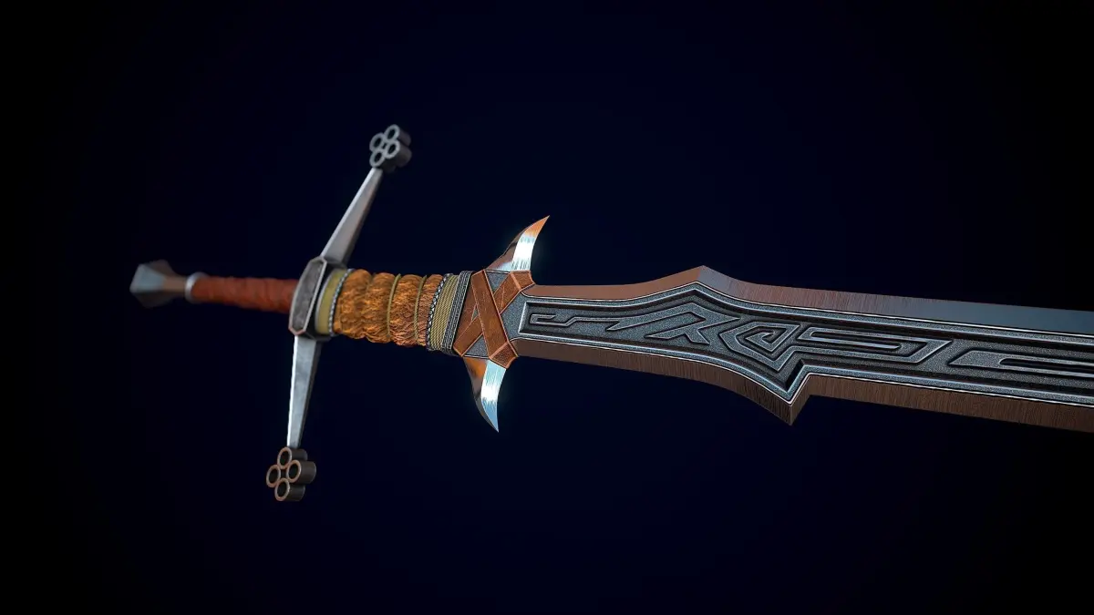 Low-poly model of Fantasy Nordic Sword doesn't contain any ngons and has optimal topology. Archive with textures contains such 2k maps: -Base color map -Metallic map -Normal map (OpenGL) -Roughness map. All images and videos were rendered in Marmoset.