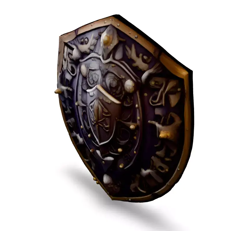This low-poly fantasy shield model features intricate ornate details, ideal for game development, especially RPGs and fantasy settings. It's suitable for both real-time applications like games and AR/VR experiences, as well as for static renderings in cinematics or pre-rendered cutscenes. The model comes with PBR textures and is optimized for performance, while retaining a high level of visual fidelity. Available file formats include GLB, OBJ, FBX, and STL for 3D printing. Key features include: low-poly design, clean topology, UV unwrapped, PBR textures, and optimized for real-time use. Its design incorporates both metal and wood elements, enhancing its versatility and realism. The detailed engravings and embellishments add a touch of history and craftsmanship, making it perfect for characters such as knights, warriors, or paladins. This shield can be easily integrated into various game engines and is ready for immediate use in your projects. Whether used as a defensive tool or a decorative element, this shield adds value to any fantasy scene. It is game-ready and offers a balance between detail and performance.