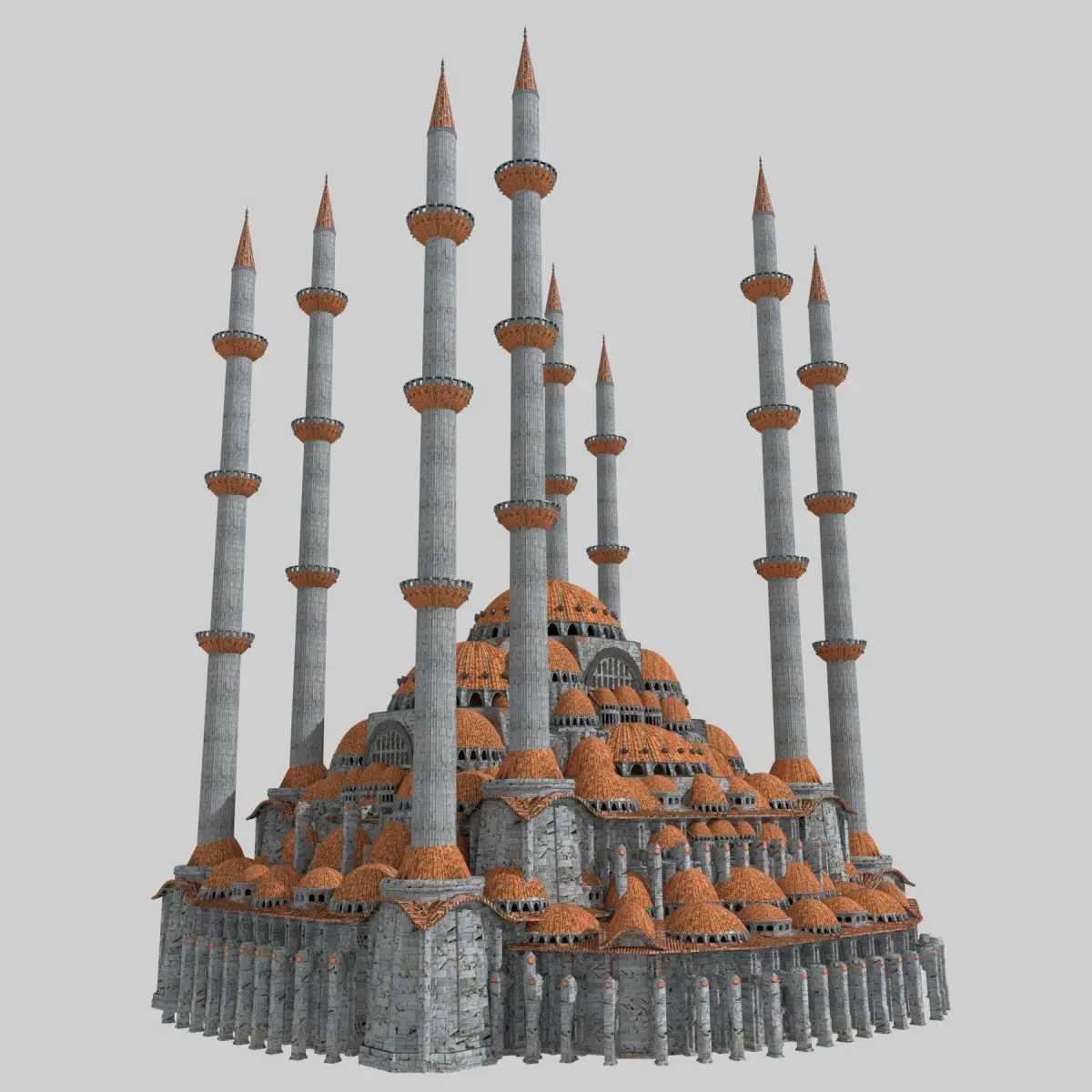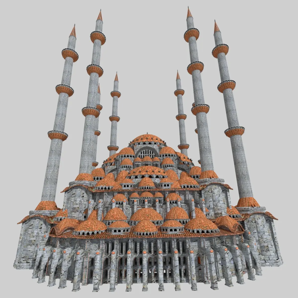 Original 3D model of a fantasy Ottoman Mosque, my own design, excellent for use both in close range shots depicting the elaborate visual detail of the build and also high impact backdrops, for period films/drama/games. Inspired by the builds of Medieval Constantinople and later Istanbul, this build is suitable for virtual walk-throughs, in games/general media set in this period (such as Assassin's Creed). This design was created in Blender, is also currently available in fbx/obj/dae/3ds and is ready to be converted and/or rendered into ANY SUPPORTED 3D PROGRAMME for the desired effect of the customer, ready to be used straight away in games/film/media. All texture maps have been utilised for a realistic depiction (ambient occlusion, specular,normal,displacement,diffuse etc).