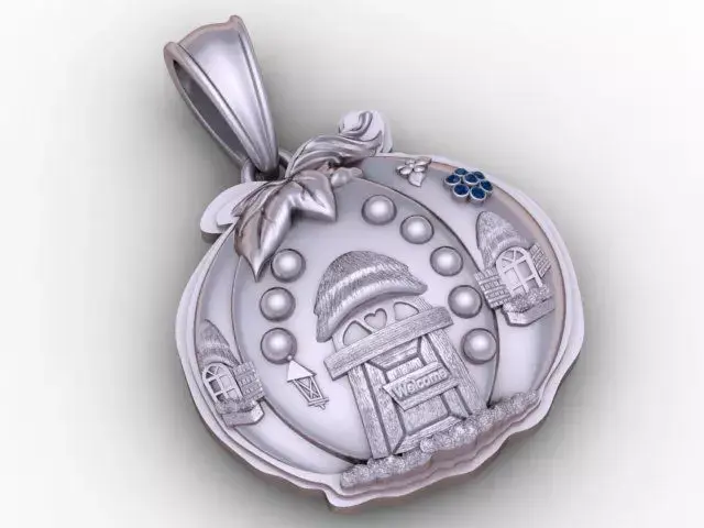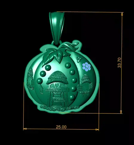 This enchanting 3D printable pendant features a beautifully detailed pumpkin-shaped fairy cottage, blending whimsical charm with elegant craftsmanship. The pendant showcases a cozy miniature house carved into the pumpkin, complete with a thatched-roof door, heart-shaped accents, a welcoming sign, and lantern-style decor elements Each window, leaf, and ornamental detail is expertly sculpted to add depth and storytelling to the design. The gemstone-style inlay on the side gives the piece a magical sparkle, enhancing its fantasy theme. The smooth bail at the top ensures the pendant hangs naturally and works perfectly with chains, cords, or beaded jewelry Ideal for resin printing, metal casting, or gold-plated jewelry production, this pendant is perfect for fans of fantasy art, cottagecore style, and unique handcrafted accessories. The design features clean geometry and crisp detailing, ensuring excellent print quality for both hobbyists and professional jewelers