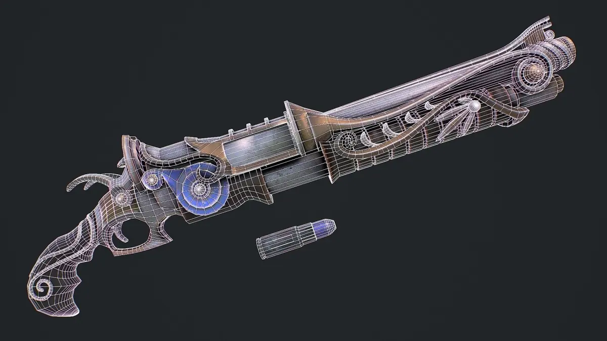 Hello. This is a high definition quality polygon of a Fantasy rifle 1 3 3D Model with PBR textures. Extremely detailed and realistic. Suitable for movie prop, architectural visualizations, advertising renders and other. The archive includes Obj and FBX, textures for the Unity: Base color, Height, Metallic, Mixed AO, Normal_OpenGL, Roughness. And also included in the archive textures for UE: BaseColor, Normal, OcclusionRoughnessMetallic. All textures are 4k resolution. The model contains 7 objects: bullet, cartridge_case, Fantasy_rifle_1, hammer, hammer_1, lock, trigger.