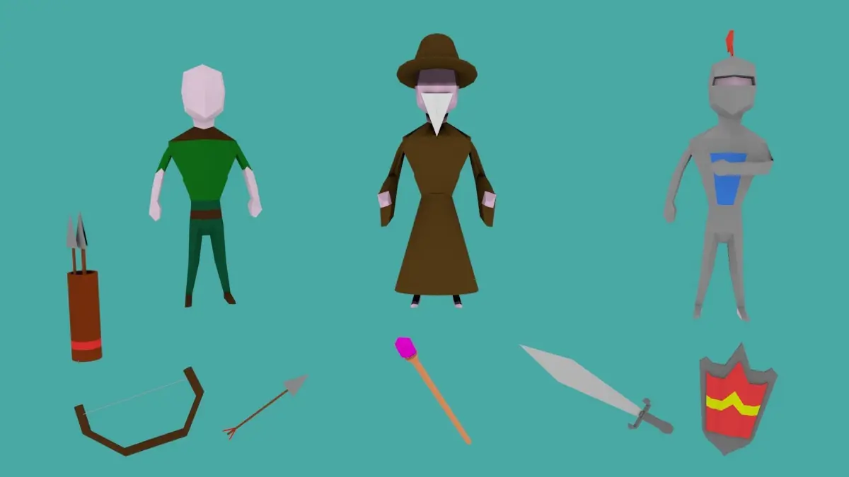 This pack includes de map with the magic portal and the characters with their props