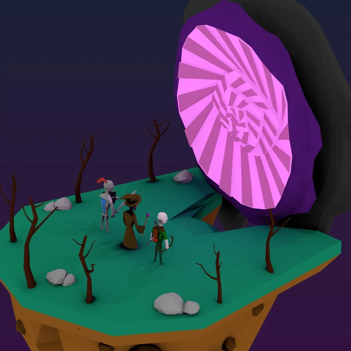 The whole models with the map had a total of 7.129 faces and 7.711 vertices.All characters are fully and easily editable to any position.The portal emits a light effect and is separated from the base so it can make any animation.