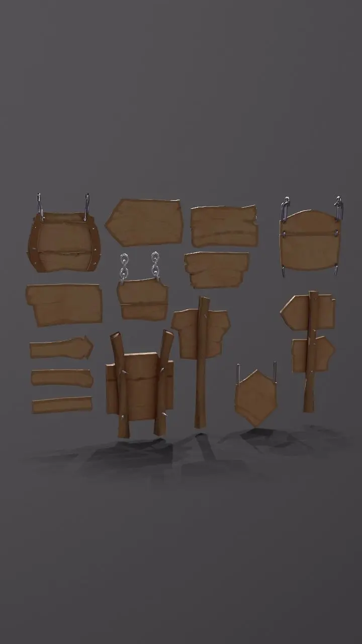 Wooden Sign game asset pack v01 All textures in .PNG Textures size 2048x2048 Albedo,normal,rougness,metalness,opacity