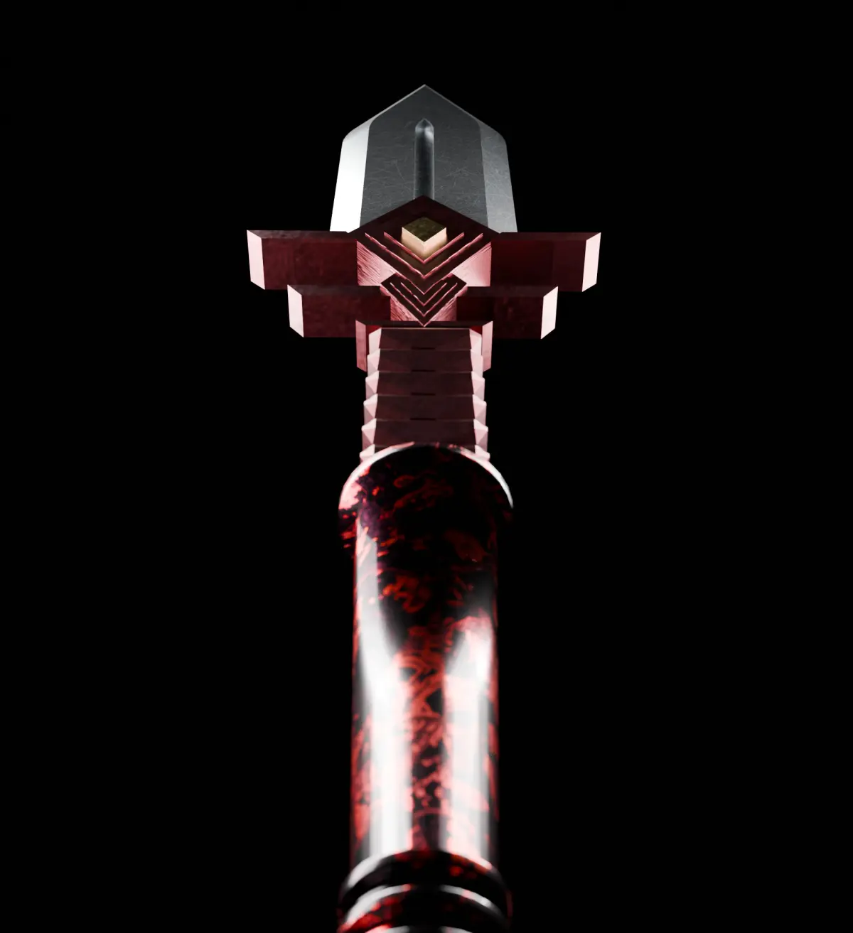 Blood-stained leather grip and accents to evoke a dark, mystical vibe.