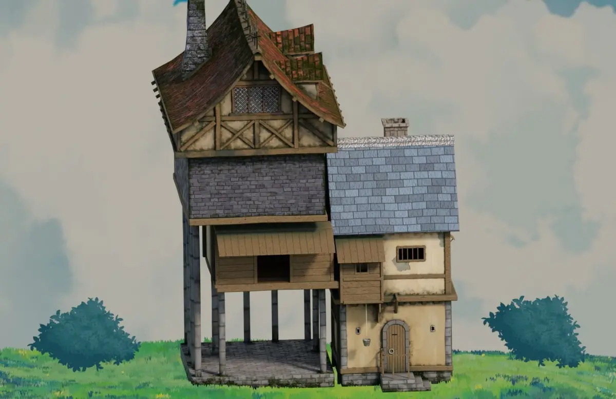Model of fantasy medieval house. animation ready 3d model of a fantasy medieval house on Blender. Textures only work on Blender as they are Only procedural materials, no baked textures..