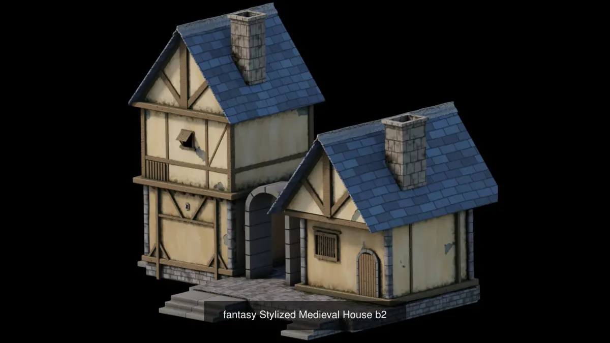 Model of 8 fantasy medieval house. Game ready 3d model of a fantasy medieval house on Blender. Textures only work on Blender as they are node setups.