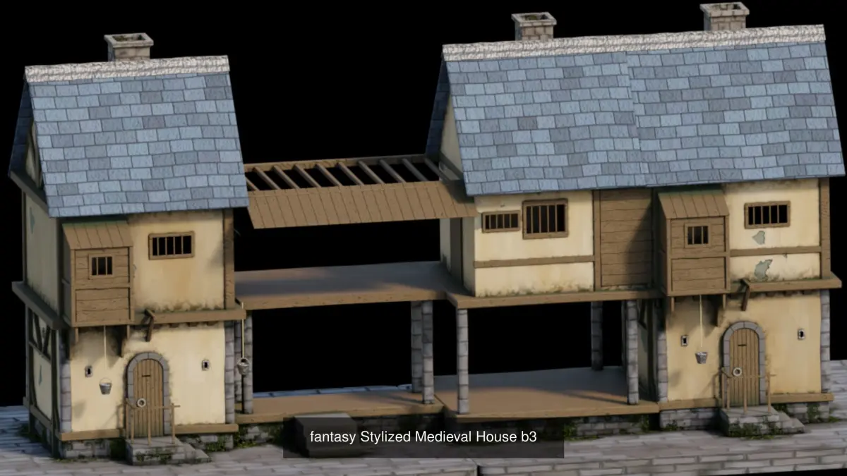 Model of 12 fantasy medieval house. animation ready 3d model of a fantasy medieval house on Blender. Textures only work on Blender as they are node setups.