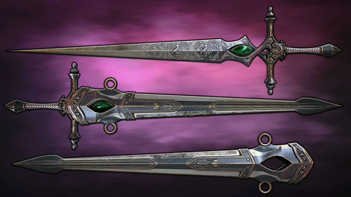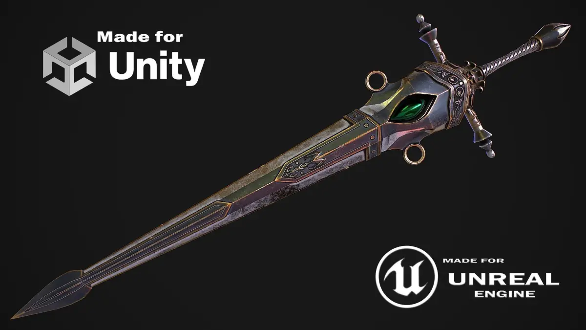 Hello. This is a high definition quality polygon of a Fantasy sword 26 with scabbard 3D Model with PBR textures. Extremely detailed and realistic. Suitable for movie prop, architectural visualizations, advertising renders and other. The archive includes Obj and FBX, Marmoset scene, textures for the Unity: Base color, Height, Metallic, Mixed AO, Normal_OpenGL, Roughness. And also included in the archive textures for UE: BaseColor, Normal, OcclusionRoughnessMetallic. All textures are 4k resolution. The number of materials corresponds to the number of main objects in the scene. The model contains 2 object: Fantasy_sword_26, Fantasy_sword 26_scabbard