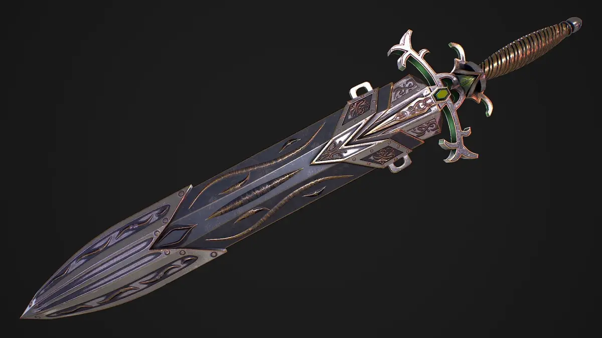 Hello. This is a high definition quality polygon of a Fantasy sword 29 with scabbard 3D Model with PBR textures. Extremely detailed and realistic. Suitable for movie prop, architectural visualizations, advertising renders and other. The archive includes Obj and FBX, Marmoset scene, textures for the Unity: Base color, Height, Metallic, Mixed AO, Normal_OpenGL, Roughness. And also included in the archive textures for UE: BaseColor, Normal, OcclusionRoughnessMetallic. All textures are 4k resolution. The number of materials corresponds to the number of main objects in the scene. The model contains 2 object: Fantasy_sword_29, Fantasy_sword 29_scabbard