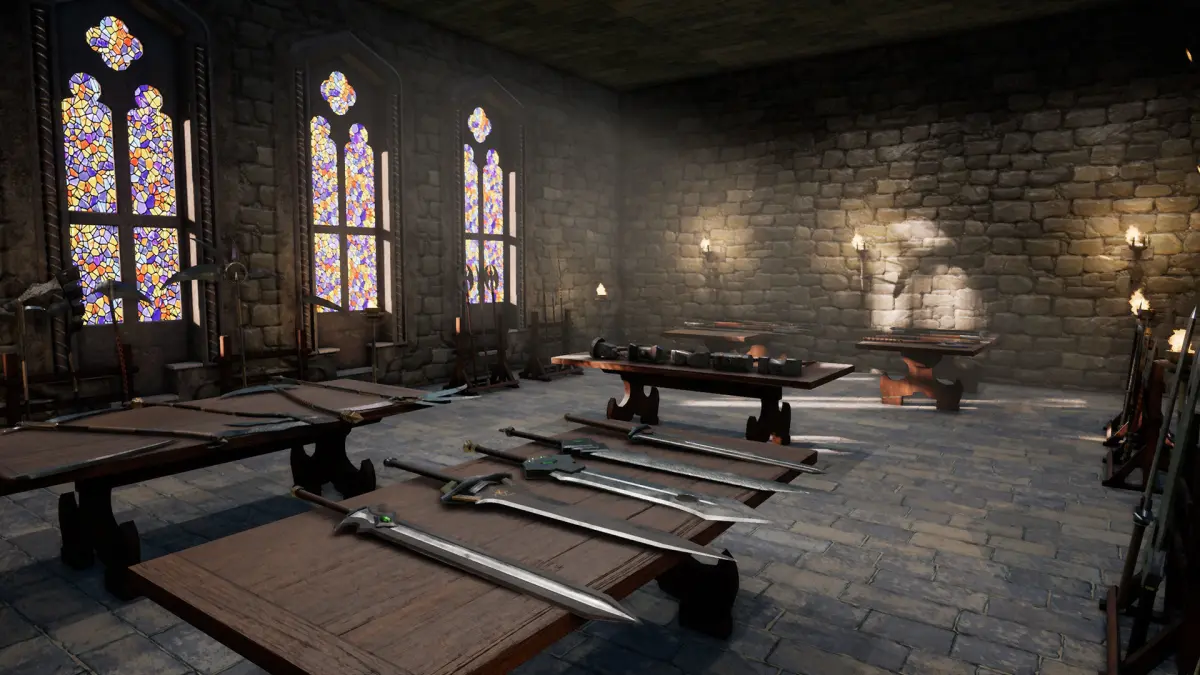 This kit consists of 25 different warrior class weapons. It comes with two variations of textures. (Clean and used/damaged). Each weapon also comes with its own Icon so that you may use the grid system provided to generate your own inventory system. (Note no inventory Blueprint included just the images to get you started) The weapons are in two forms Static Mesh and Skeletal Mesh. The Skeletal Meshes have multiple joint locations to offer a difference in grip style. It is a great kit for building gear systems and expanding existing weapon sets. All of the models come with 4096 PBR texture work flows. (we recommend mipmaps for the high res textures) The kit also comes with the set used to take the photos. The set is part of a larger great hall kit coming soon. but the meshes are still clean and ready to use.
