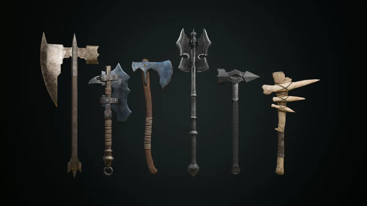 Models of all kinds of swords, axes, hammers