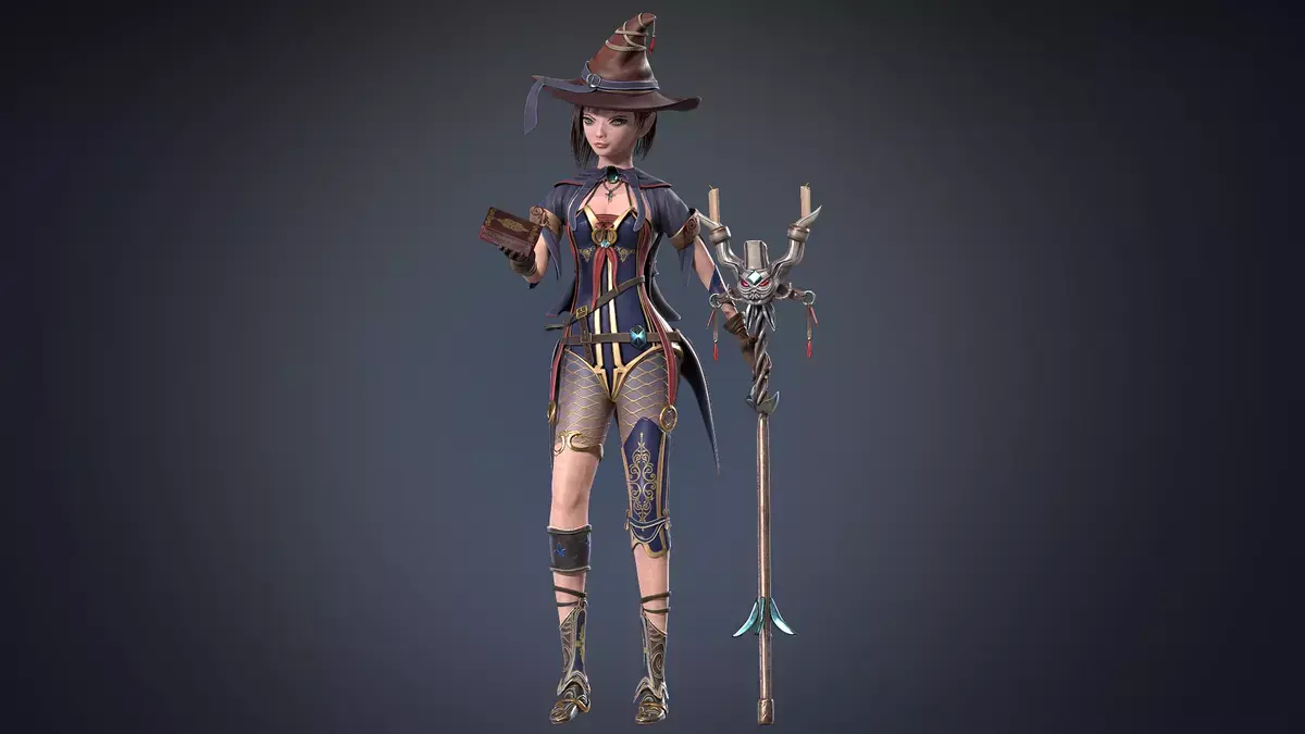UE4 Video - https://youtu.be/GkHpGIjLFa83D model of the character Fantasy Witch Girl. Rigged and contains 10 animations. Custom skeleton and Ue4 Skeleton rig. The model has 5 skins, 10 UV sets. All textures, 4096x4096 (PBR, Metall/Rough, include AO, Height map, Mask map for HDRP). Blender file has textures and modular materials. Ready for render. Model has separeted meshes. Package has two Blender files with rig (custom from Maya) and without it, Textures pack, animations fbx pack, Base meshes, separeted meshes.The model has 10 UV sets: Body, Hair, Eyes, Eyes p1, Lashes, Hat, Cloth, Staff, Cloth Up, Cloth Hands. All of those sets can be combined with each other.
