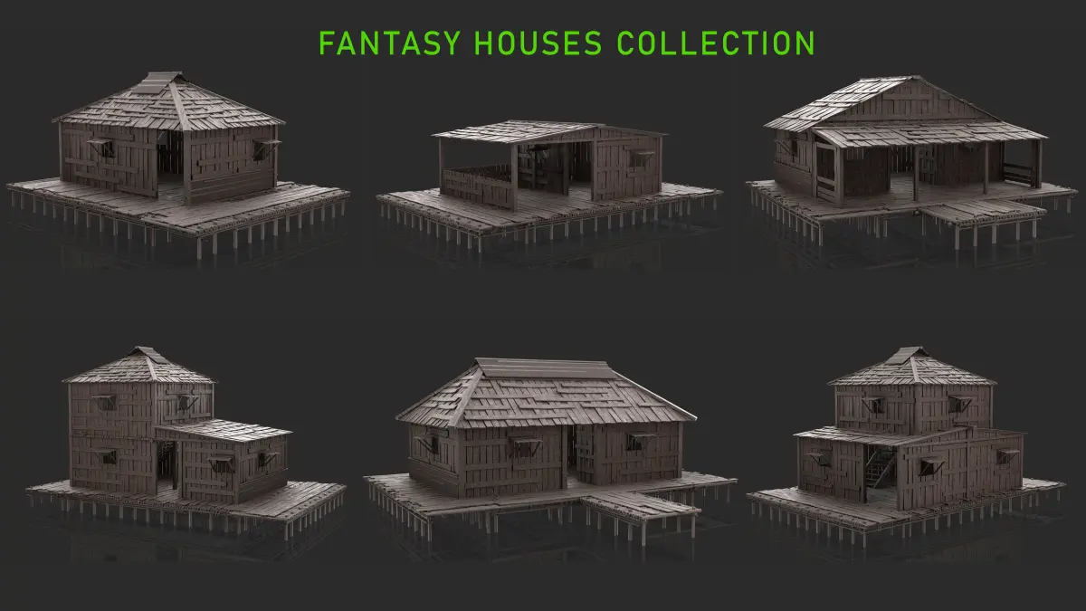 Fantasy Wooden Houses Collection. Ready for any project like game, bfx,cartoon video, or making beautiful renders.The texture and material are prorerly applied to the model.It's Perfect for project backgrounds, landscapes and cityscapes.