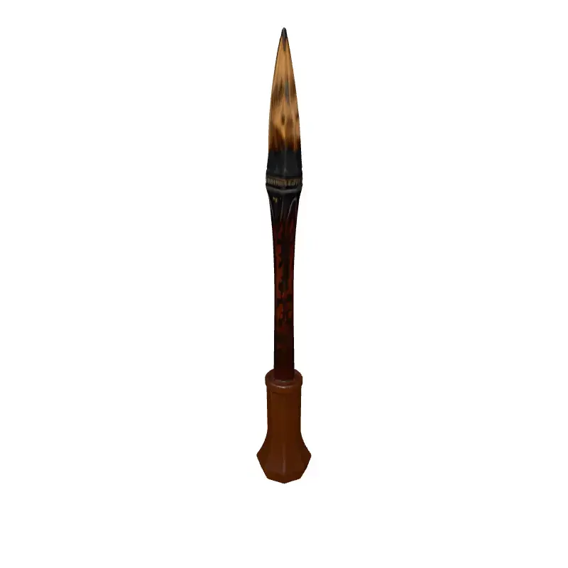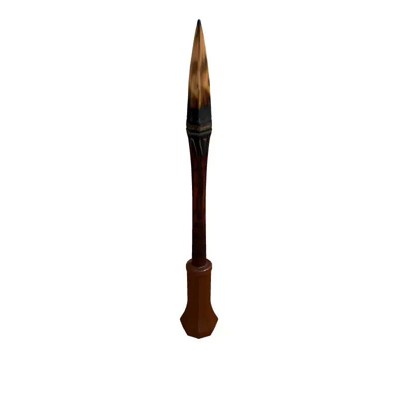 This highly detailed 3D model presents a distinctive wooden spear, elegantly paired with an ornate display stand, perfect for enriching your digital environments. The spear features a meticulously crafted, sharp wooden tip with a burnt effect, transitioning into a slender shaft adorned with intricate carvings near the head, providing an authentic ancient or fantasy aesthetic. The accompanying stand boasts a robust, textured finish, possibly mimicking aged metal or stone, with a stable hexagonal base designed to showcase the spear prominently. This versatile asset is ideal for a wide range of applications including immersive game development, historical or fantasy-themed architectural visualizations, compelling augmented reality (AR) and virtual reality (VR) experiences, or as a striking element in digital art compositions. Optimized for real-time rendering, this model is built with clean topology and is fully UV unwrapped, ensuring ease of integration into any project. It comes with high-quality PBR textures for realistic material representation. Supporting multiple industry-standard file formats such as GLB, OBJ, FBX, and USD, it offers maximum compatibility and flexibility for your creative workflow, ready for immediate use in your next project.