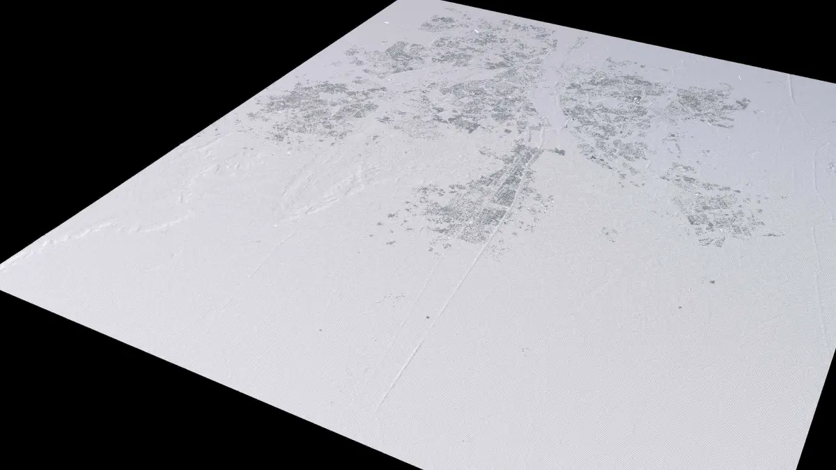 Originally created in Houdini 19. Final images rendered in Houdini. Data source is ASTER GDEM V3, ASTER WATER V1, Open Streep Maps 2022, Copernicus Sentinel 2016.