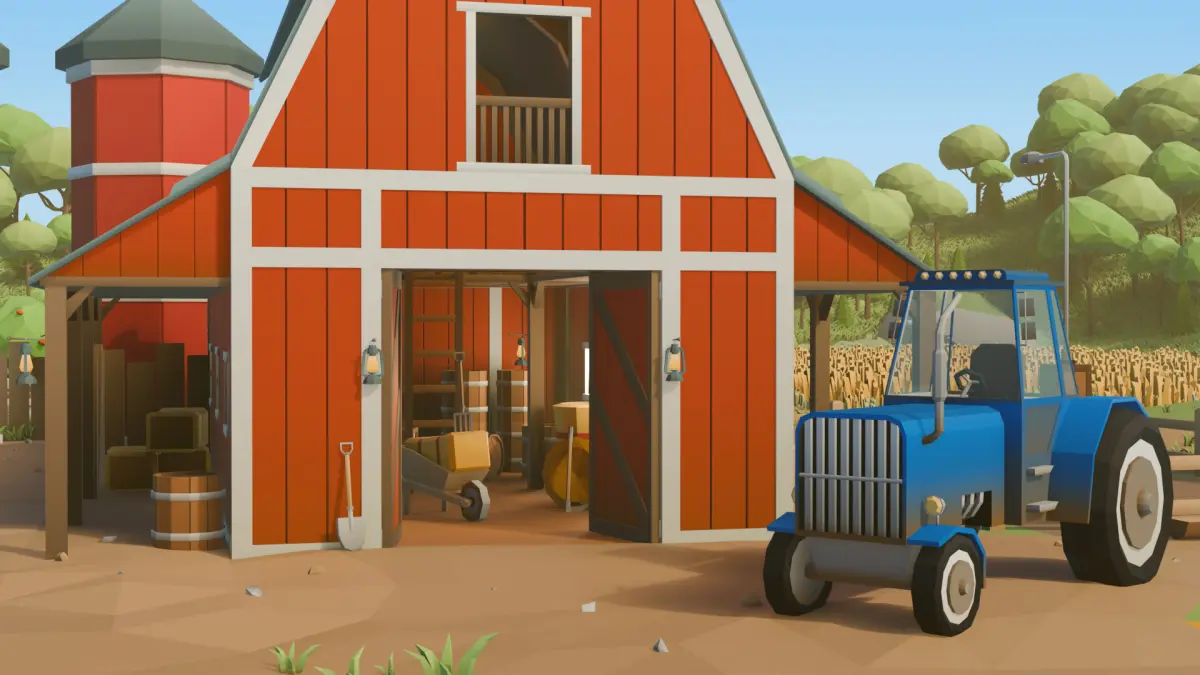 - Structures: 1 red barn, 1 chicken coop, 1 wooden outhouse, 1 grain depot, 1 farm shop
