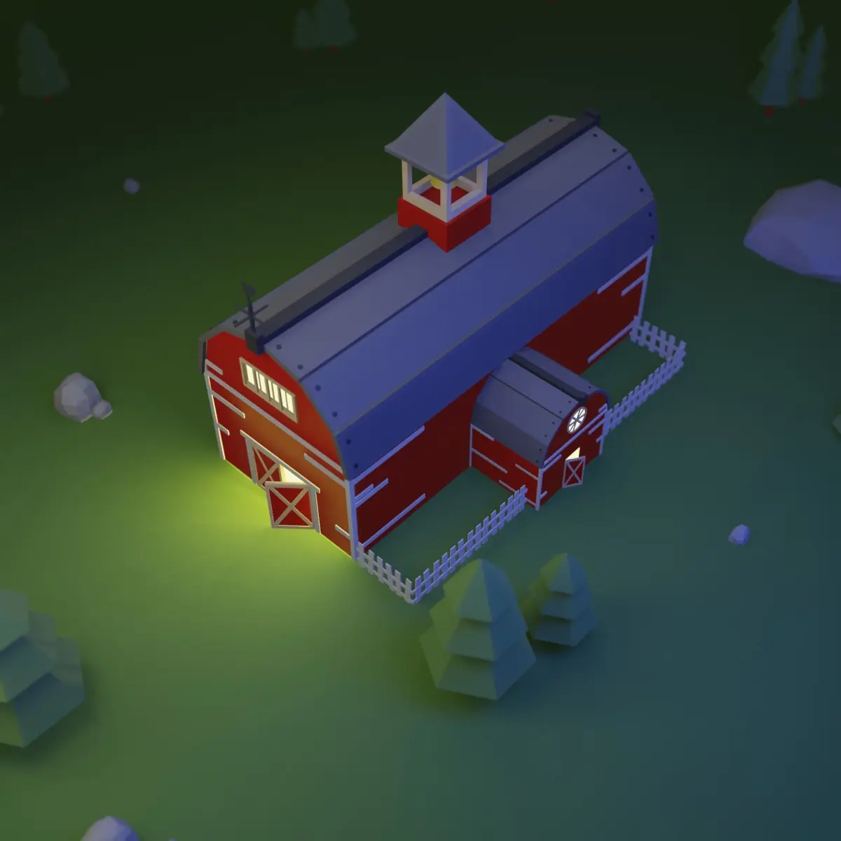 low-poly 3D model of a rustic barn house, optimized for minimalistic scenes and game assets. #3DModel #LowPoly #farmbarn #lowpolymodels