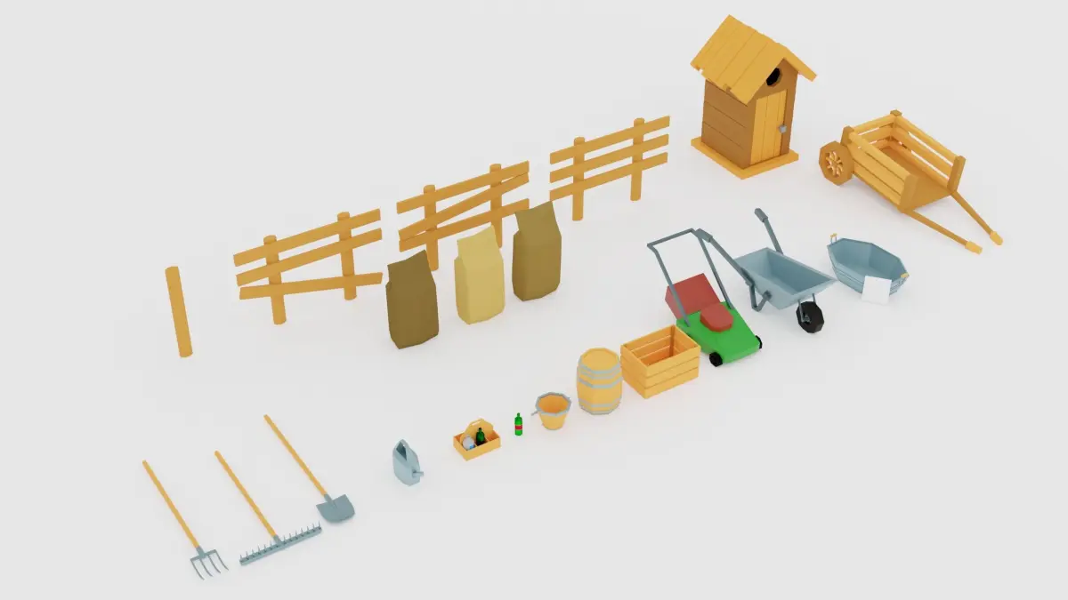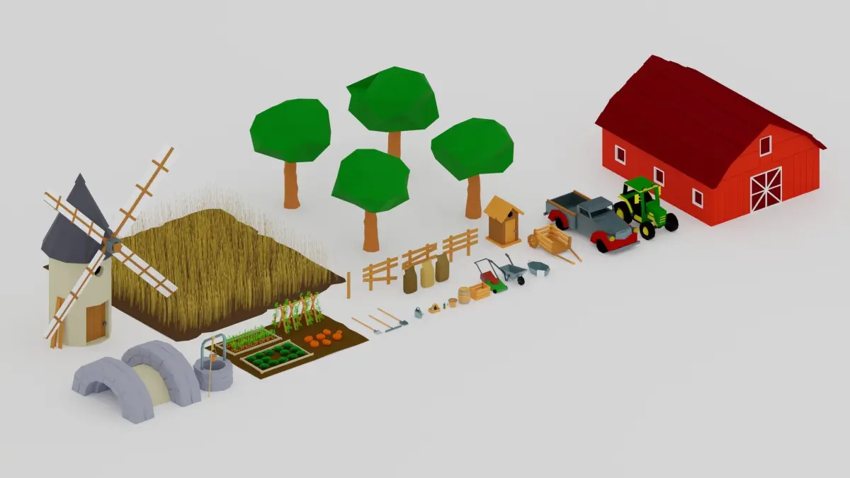 Full set, low-poly,Contains everything you need to build a scene within you may find farm / barn / country side objects related!