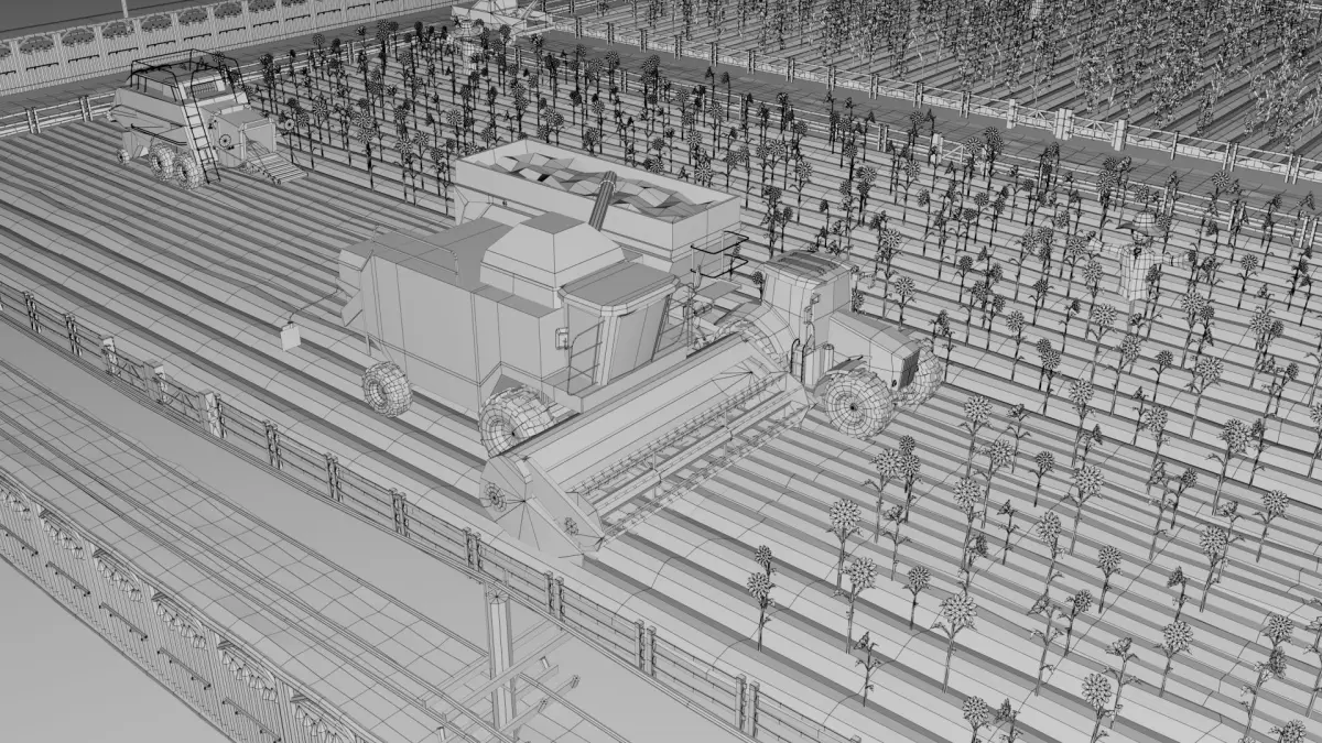 Items(x300)Barn, House, Horse Stable, Cow Stable, Industrial Building, Gate, Windmill, Tower, Cable Pole, Water Well, Animals, Fruits, Vegetables, Market, Bee hive, Trailer House, Fence, Trees, Plants, Grass, Heavy Farm Vehicles, Farm Baler, Tractor, Trailer, Combine Harvester, Truck, Swing Chair, Market Stall, Cart, Tire, Drum, Wheel Barrel, Bench, Chair, Furniture, Chicken Cage, Green House, Crate and many more Exterior Props