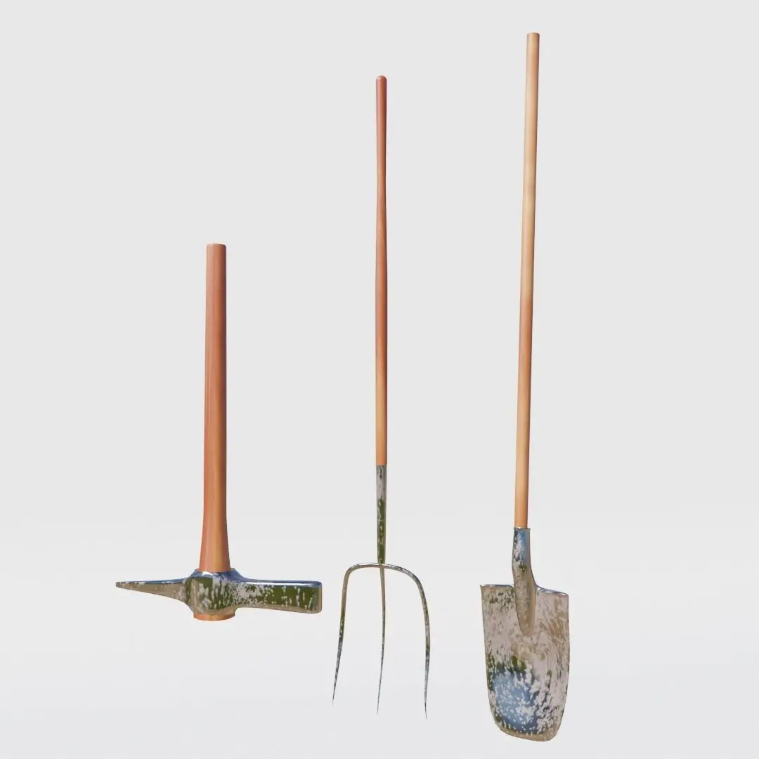 1 x Pitchfork 1 x shovel 1 x Mattock