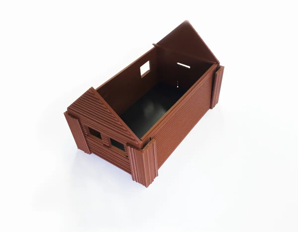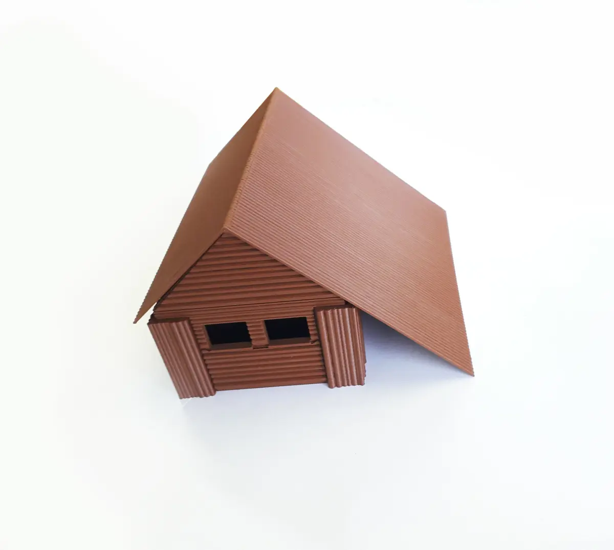 A simple wooden house for living for the rural population. So we could describe our creation today. He has everything he needs. Floor, four walls and roof. Everything is complemented by a small playpen to protect the cattle. So what do you think? Will you print it?
