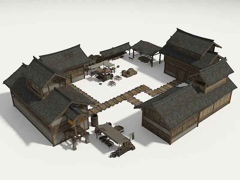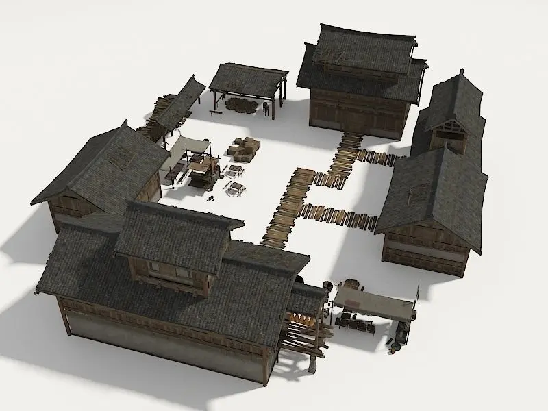 HomeCatalogFarmyard Wooden structure house courtyard Low-poly 3D model