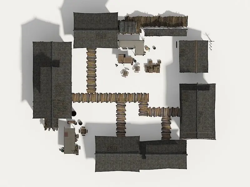 Farmyard Wooden structure house courtyard Low-poly 3D model