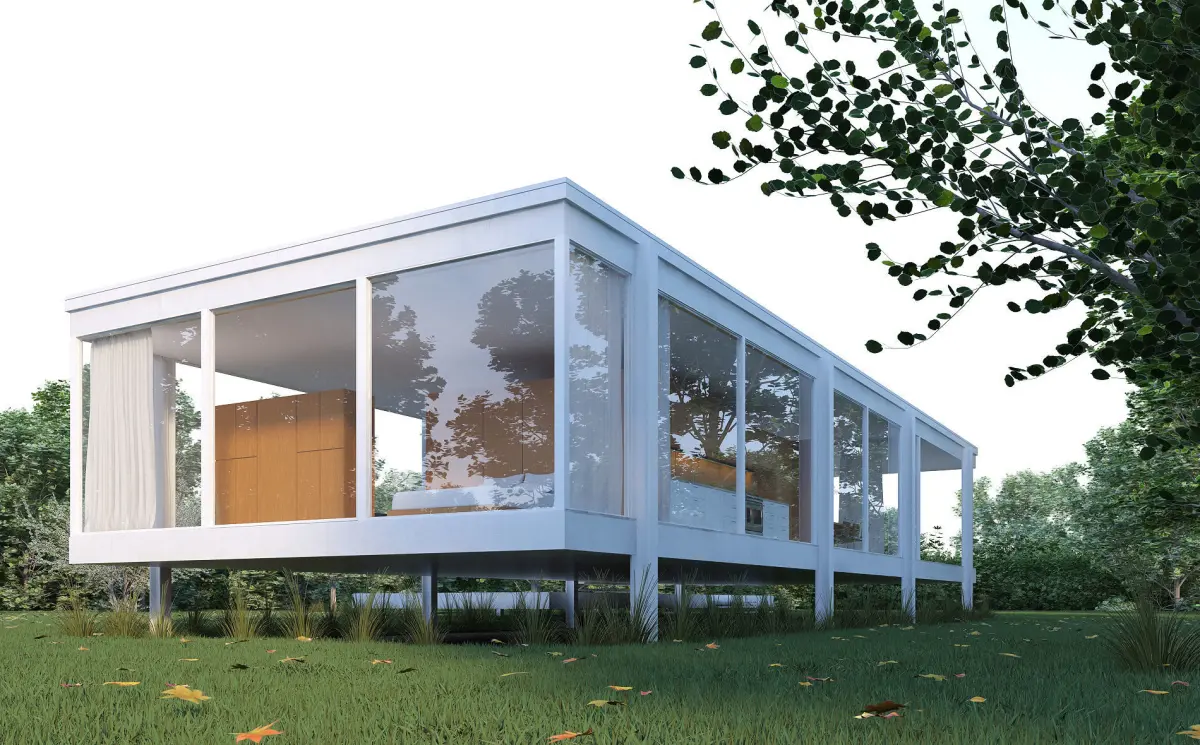 Farnsworth House, designed by Ludwig Mies Van Der Rohe. Modelled by Visuarch.