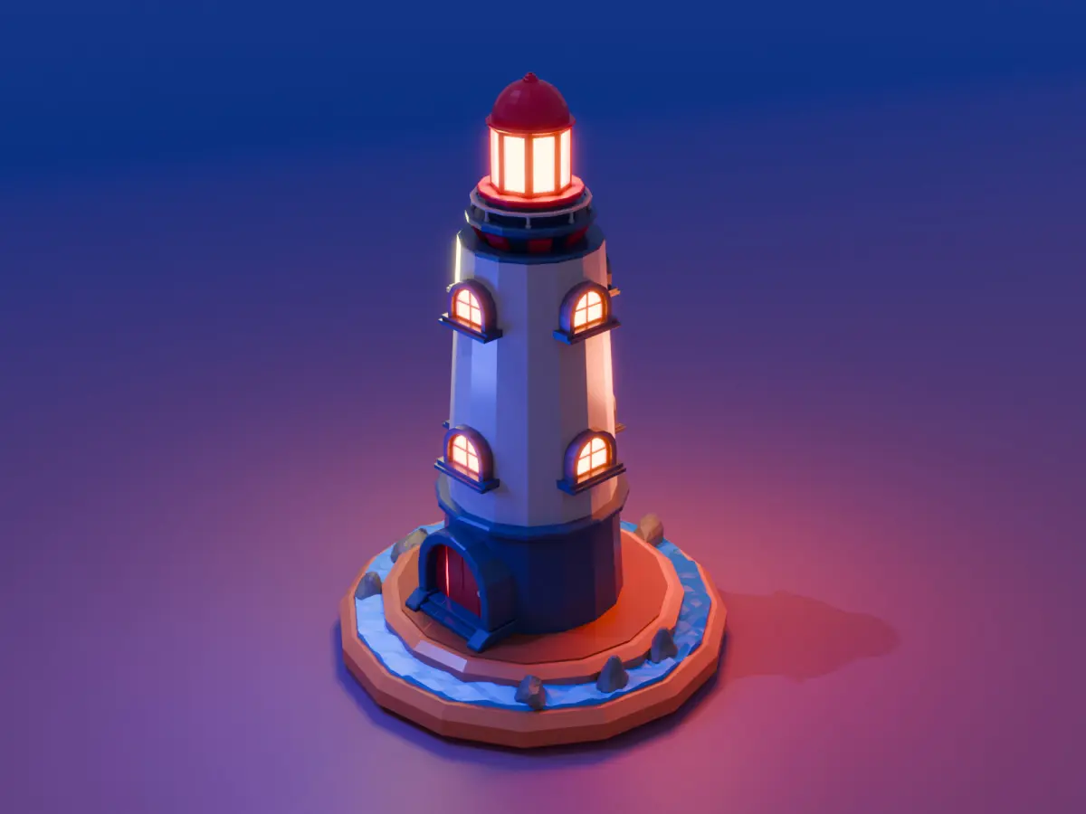 Modelo 3D de un faro costero, creado íntegramente en Blender usando materiales simples (pintura directa) y objetos de addons para detalles como las piedras.Sin texturas UV ni mapas complejos, lo que facilita su edición y adaptación a distintos estilos visuales.Ideal para proyectos que requieren modelos ligeros y fáciles de modificar, como juegos, visualizaciones rápidas o prototipos.Compatible con formatos estándar (.blend, .obj, .fbx) para máxima flexibilidad.