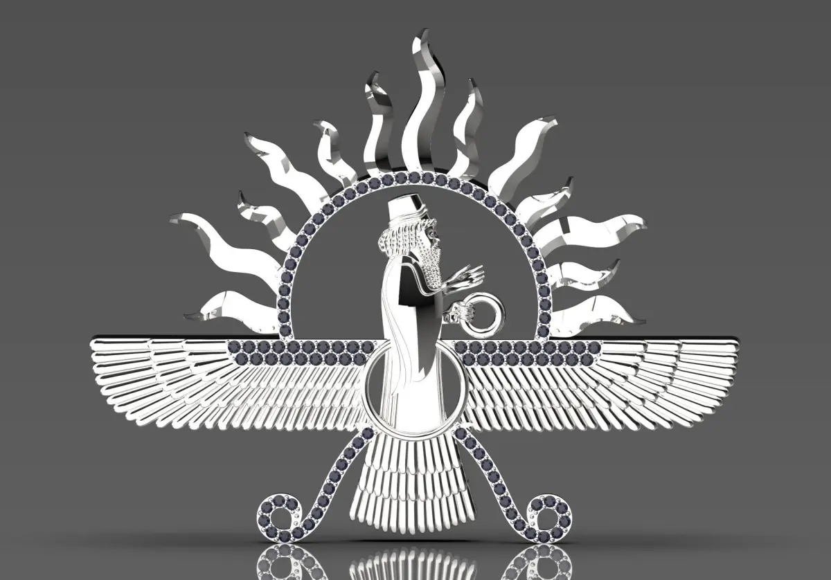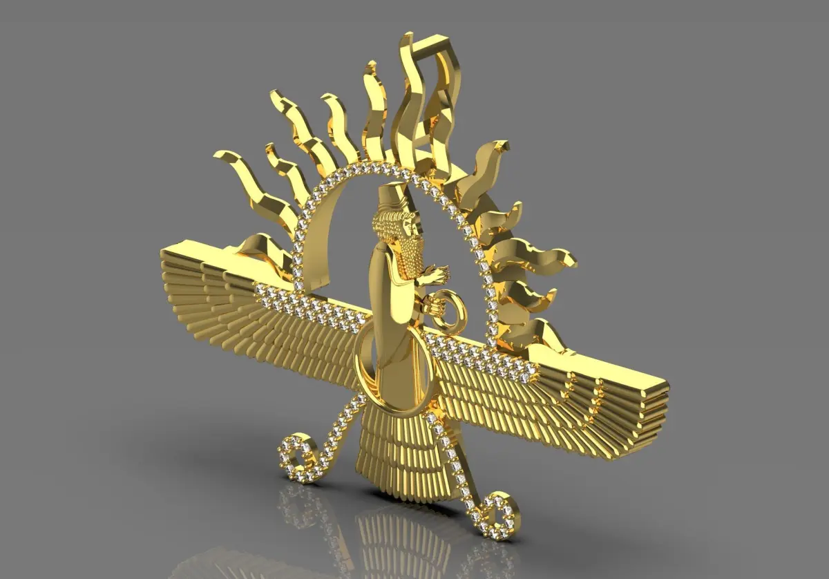 This beautiful Forouhar pendant is a symbol of Iran's rich culture and history, adorned with sparkling gold and jewels. Its unique design and meticulous details give this piece of jewelry a special and stylish look. The Forouhar pendant not only adds beauty to your style, but also represents cultural and spiritual values. This piece of jewelry can be a unique gift for your loved ones and make every moment more special.