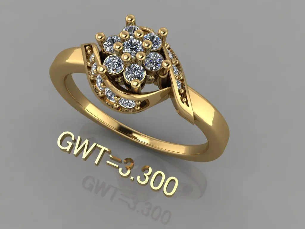 Top-left: A side view with a gem weight (GWT) of 3.300.