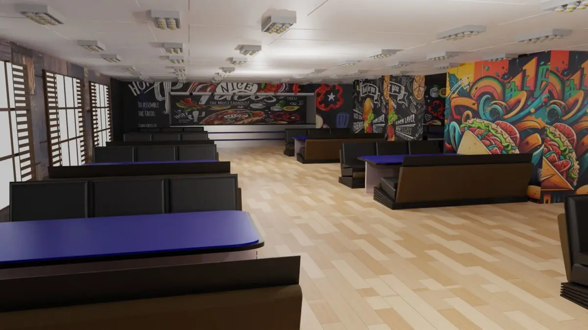 fast food interior. Blender, Fbx, Obj, Stl and Gltf file are available.It is designed to be used in every field, including games.Textures are embedded in fbx.Textures are also embedded in Blender and Gltf files.