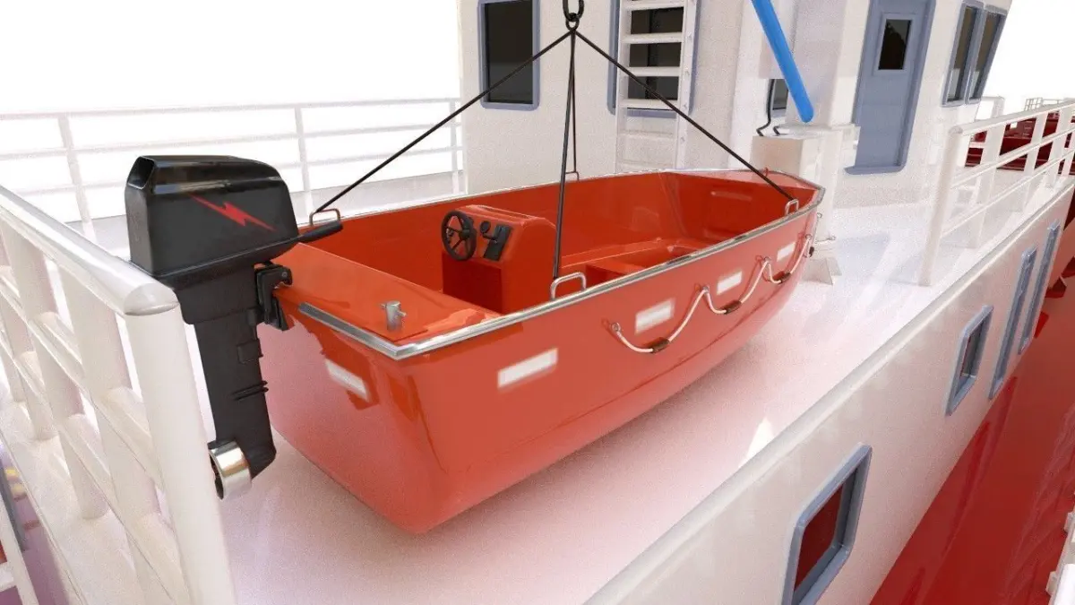 TUF Marine and Offshore fast rescue craft and man overboard boat is built with flame retardant FRP material and is filled with polyurethane foam in the inner and outer shells to provide sufficient buoyancy. If the hull below the waterline is damaged, the float will still provide sufficient buoyancy to allow the boat to float on a safe level. The boat is provided with oil-resistant and non-absorbent foam fenders on both sides, and there are two layers of rubber fastening pieces for replacement. There are steel handrails on both sides of the rescue boat for the occupants to go up and down. The self-draining deck ensures rapid discharge of incoming seawater. The boat is equipped with a self-righting air box to meet the requirements of LSA code and MSC/CIRC809 specifications.**if you download the model please review it and give your thoughts to improve my work. Thanks.