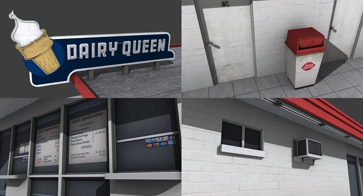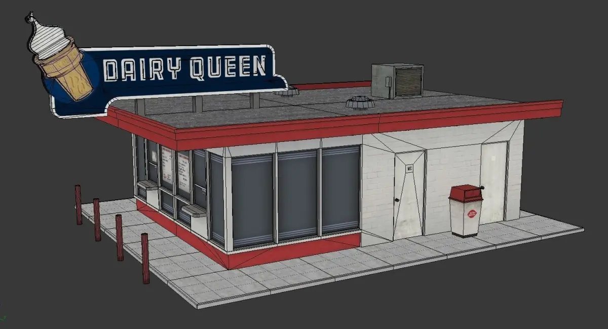 McDonalds - 1,406 poly / 819 vertsRandy's Donuts - 902 poly / 1,022 vertsJack In The Box - 477 poly / 419 vertsWendy's - 1,681 poly / 2,063 verts KFC - 3,405 poly / 3,954 vertsTaco Bell - 4,885 poly / 5,703 vertsWhataburger - 2,232 poly / 2,661 vertsDairy Queen - 6,413 poly / 7,084 verts
